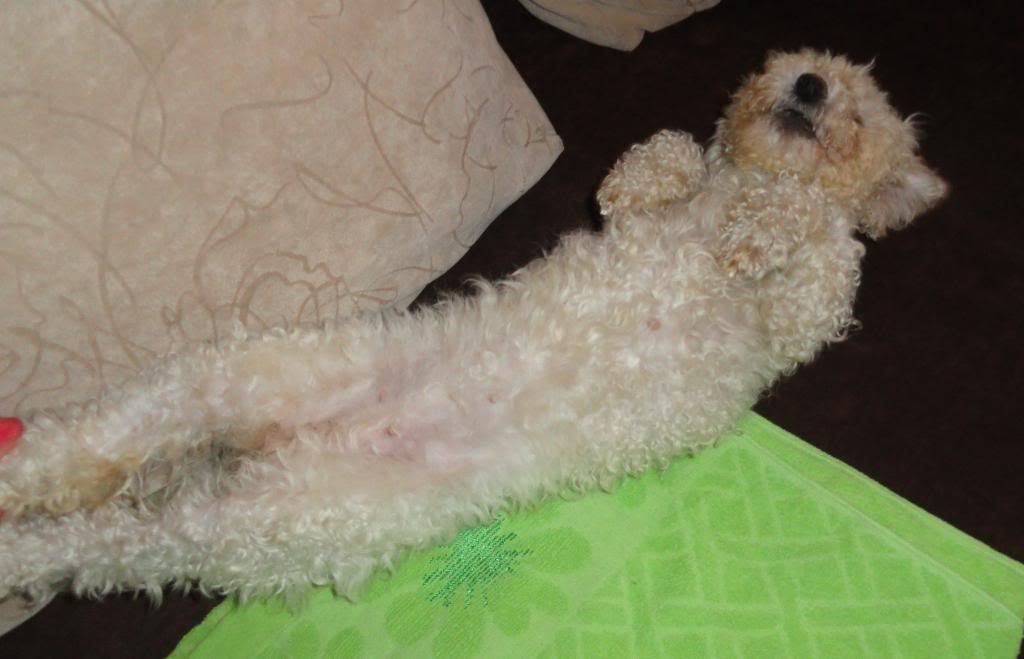 Kama681 Posted October 22, 2012 Author Posted October 22, 2012 W listopadzie wybieramy się na pierwsze strzyżenie, muszę w końcu doprowadzić stan kędziorków do ładu. No jak na razie to Nutka ma kilka długosći włosa. Tak jak została ostrzyżona po uratowaniu tak włoski rosną dalej. Śmiesznie nieco to wygląda bo w okolicy brzuszka ma takie długie sterczące i czasem wygląda jak by była w ciąży albo miała przepuklinę. Na główce tez zrobił się już nie mały bałagan. Generalnie włos się wzmocnił i po odgarnięciu widać jak śnieżno biały jest, niestety wierzchnia powłoczka jest nieco żółtawa, ale i nad tym przecież popracujemy:) Nie obcinałam jej wcześniej bo nie było czego w niektórych miejscach miała prawie łyse placuszki ale teraz to już co innego. Nutka generalnie dobrze znosi zabiegi pielęgnacyjne, czesanie i czyszczenie uszek czy oczek, wie ze po każdym takim zabiegu idziemy do kuchni po smakołyki wiec jest dzielna:) Czasem ucieknie przed zakończeniem i od razu kieruje się w stronę lodówy, szczekając i domagając się nagrody. Tak jakby chciała ukryć fakt ze jesteśmy dopiero w połowie zabiegu :) Spryciula. Quote