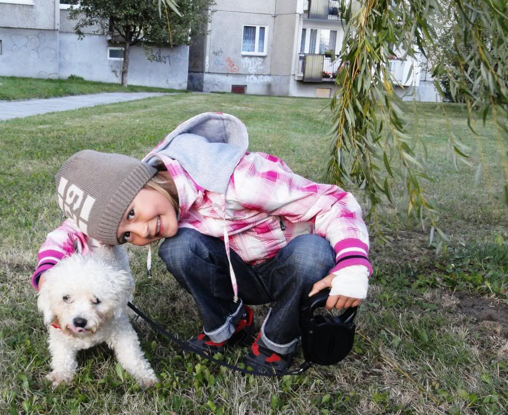 Kama681 Posted October 22, 2012 Author Posted October 22, 2012 Nucia, przeszła kolejne 2 testy:) Jestem dumna z mojego łobuzka. Po pierwsze wczoraj spuściłam ja ze smyczy (oczywiście najpierw sprawdziłam i wykluczyłam wszelkie zagrożenia dla małej) i sprawdziłam czy będzie grzecznie spacerować. Mogę się nią naprawdę pochwalić, była prze grzeczna. Odbiegała na kilka metrów po czym zatrzymywała się i czekała na mnie. Na każde moje zawołanie i uderzenie smyczką w moje biodro gnała do mnie jak szalona, nawet kiedy zaczynała wąchać niesamowicie apetyczne zapaszki w trawie, odrywała się i przybiegała. Na razie robię krótkie próby, bo za bardzo sie boję. Ale widzę ze Nutka zaczyna łapać o co chodzi na spacerkach bez smyczy. Można więcej ale trzeba być grzecznym :) Po jakichś 10 min takiego testu zapięłam ja i poszłyśmy w "gości" do Cioci VIoli i Natusi:) Oj jaki Nutka dała popis!!! Od jakiegoś czasu kiedy Łobuziara słyszy dźwięk noża ocierającego się o deskę do krojenia jest niesamowitym żebrakiem. Może spać jak suseł ale kiedy tylko usłyszy krzątaninę w kuchni jest pierwsza. Wczoraj pokazała tę cechę swojego charakterku w 200%, nie wyszła z kuchni nawet na 5 cm, a Ciocia VIola stała się najfajniejszą kumpelką po tym jak poczęstowała Nutkę boczusiem:) Po drugie Nutka zaakceptowała ubranko. Co prawda chwila zakładania i zdejmowania nie jest jej ulubioną ale jakoś daje radę, a na dworze prawie zapomina ze jest w ciuszkach. Mogę to oceniuć po 2 spacerkach kiedy Nutka była ubrana. Nie wiem jak będzie dalej ale rokuje całkiem dobrze. Drewniane nogi ma tylko podczas ubierania i w windzie, ale kiedy pod łapkami pojawia się trawka mojej Nutce już nic humoru nie psuje:) Tu jeszcze na "drewnianych" nogach, ale już za chwilkę .... Quote
