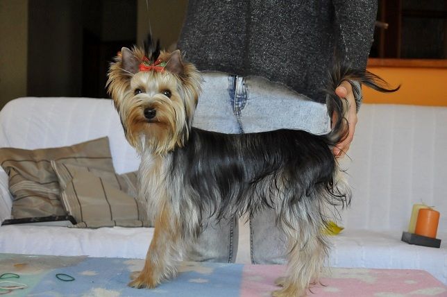Hahnoto Posted May 23, 2013 Posted May 23, 2013 Bajer Urodził się 12 lutego 2007 roku w hodowli Nobelland. Matka : Gracja z Rodem Pyrlandii Ojciec : Nobel Jantarowa Fuga Od niego zaczęła się moja miłość do yorków. Jaki jest? Leniuch, przytulasek (szczególnie po kastracji), czasami szalony i niegrzeczny, ogromny żarłok (:roll:), uwielbia spacery. Troszkę grubas, ale walczę z tym:shake: Eris Urodziła się 18 października 2012 roku również w hodowli Nobelland. Matka : Forever Beauty Koral Ojciec : Obama Park Ridge Mój drugi upragniony york:p Eris to istny wulkan energii, wszędzie jej pełno. Uwielbia łobuzować, jak jest za cicho w domu to jest to podejrzane:diabloti: Mała ma predyspozycje do uprawiania psich sportów, puki co amatorsko lata za frisbee;) Quote