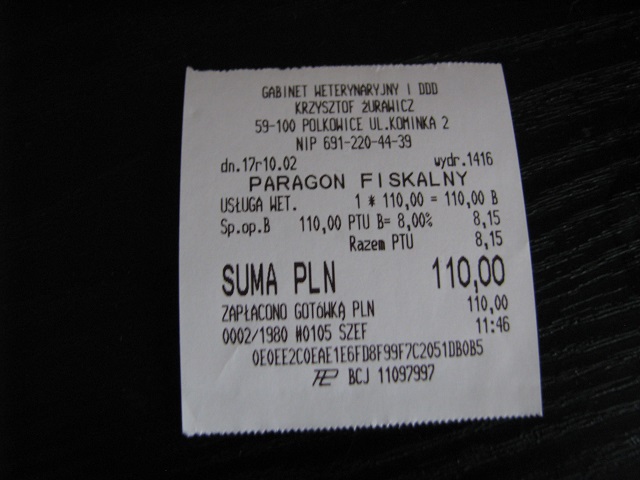 Anula Posted June 12, 2013 Posted June 12, 2013 Wydatki na leczenie Sawany i transport: 15.08.13 - wizyta w Lecznicy + leki - 90,00zł (paragon) str.8 post 182 16.08.13 - wizyta w Lecznicy + leki - 53,25zł (paragon) str.8 post 194 17.08.13 - lek Cavinton Forte 10mg - 39,00zł (bez paragonu) str.9 post 204 27.08.13 - wizyta w Lecznicy + lek - 48,60zł (paragon) str.10 post 242 29.08.13 - transport - 150zł (faktura) str.12 post 280 Zwrot z adopcji - transport - 150zł (faktura,brak zdjęcia) 19.10.13 - wizyta w Lecznicy-usuwanie kamienia na zębach i tabl.na serce - 215,00zł (paragon)str.19 post 460 15.11.13 - wizyta w Lecznicy-lek na serce - Cardisure 5mg(30tabl) - 90,00zł (paragon) str.22 30.11.13 - Karma lecznicza Royal Canin Hepatic HF16 - 6 kg - 132,99zł (paragon) str.25 16.12.13 - wizyta w Lecznicy - lek na serce - Cardisure 5mg(30tabl) - 90,00zł (paragon) str.25 19.01.14 - Karma weterynaryjna Royal Canin Hepatic HF16 - 12kg - 207,90zł 9paragon)str.27 19.01.14 - lek na serce - Cardisure 5mg(30tabl) - 90,00zł (paragon)str.27 26.02.14 - lek Cardisure 5mg(30tabl) i Amylan - 120,00zł (paragon)str.30 13.03.14 - lek AmylaDol 90tabl. - 42,50zł (paragon)str.31 26.03.14 - lek Cardisure 5mg (100tabl) - 220,00zł (paragon)str.33 07.04.14 - Lecznica -zabieg- usuwanie brodawek - 330,00zł (paragon)str.34 08.04.14 - wizyta kontrolna w Lecznicy - 25,00zł (paragon)str.35 10.04.14 - wizyta kontrolna w Lecznicy - 25,00zł (paragon)str.35 12.04.14 - wizyta kontrolna w Lecznicy - 25,00zł (paragon)str.35 14.04.14 - wizyta kontrolna w Lecznicy - 20,00zł (paragon)str.36 26.05.14 - szczepienie:wścieklizna i wirusówki - 75,00zł (paragon)str.40 23.06.14 - wizyta w Lecznicy (leki na kulawiznę) - 138,00zł (paragon)str.41 02.07.14 - wizyta w Lecznicy (RTG miednicy i łapy,bad.krwi) - 212,00zł (paragon)str.41 07.07.14 - Lek na serce-Cardisure 5mg - 100tabl. - 220,00zł (paragon)str.42 15.07.14 - wizyta w Lecznicy (RTG klatki piersiowej) - 92,00zł+13,90zł (paragon) str.42 18.07.14 - Lek na łapkę-Dalacin C- 3 opakowania - 42,80zł (paragon) str.42 28.09.14 - Lek na łapkę - 160,00zł (paragon) str.4417.10.14 - Leki wspomagające - 160,50zł (paragon) str.5610.11.14 - Karma RC Hepatc HF16 (12kg) - 198,00zł (paragon) str.5727.11.14 - Lek Cardisure10mg - 30tabl.-odkupiony od Poker - 132,00zł str.5816.12.14 - Lek Scanodyl 50mg - 40tabl. - 60,00zł (paragon)str.517.30.03.15 - lek wspomagający na stawy - 63,35zł (paragon)str.6418.18.05.15 - Lek Cardisure5mg + Scanodyl50mg - 280,00zł (paragon)str.6619.18.07.15 - szczepienie,zabieg,krplówki(Sawana poważnie zachorowała) - 321,00zł -(paragony) str.67;post 133520. 20.07.15 - wizyta w lecznicy,kroplówki,bad.krwi - 170,00zł (paragon);str.67;post 135321. 22.07.15 - wizyta w Lecznicy,kroplówki - 50,00zł (paragon);str.67;post136422. 25.07.15 - wizyta w Lecznicy,kroplówki,badanie krwi - 115,00zł (paragon);str.67;post137623.08.08.15 - badanie krwi - 40,00zł (paragon);str.70;post 139024.11.08.15 - leki: Promefra + Scanodyl - 198,00zł (paragon);str.70;post 140025.18.08.15 - karma RC Renal - 2kg - 75,00zł (paragon) str.71 post 1408 26.08.09.15 - badanie krwi na mocznik - 40,00zł (paragon)str.71 post 1417 27.19.09.15 - leki Cardisure 5mg (100 tabl) i Ipakitine - 290,00zł (paragon)str.72 post1423 28.14.10.15 - lek Furosemidum - 13,61zł;karma RC Renal Special - 75,00zł=88,61zł (paragon)str.72 post1438 29.28.10.15 -badanie krwi na mocznik i lek Ipakitine - 112,00zł;str.73;post 1454 30.27.12.15 - lek Ipakitine - 2 opakowania - 140,00zł;str.77 31.18.01.16 lek CitoFos - 2 opakowania - 50,00zł;str.77 32.02.06.16 - lek Scanodyl - 40tabl. - 60,00zł str.77 33.badanie rozszerzone krwi - 99,00zł;str.77 34.17.08.16 - lek Caedisure 5mg (100tabl) - 220,00zł + szczepienie (wścieklizna+ wirusówki)-80,00zł - paragon str.63 35.12.09.16 - lek Scanodyl - 40tabl.+ 100tabl. -164,00zł str.77 36.16.12.16 - lek Cardisure 5mg (100tabl) - 220,00zł str 64 37.09.03.17 - lek Scanodyl 1--tabl. - 109,00zł str.65 38.04.04.17 - lek Cardisure 5mg - 100tabl. - 220,00zł-str.65 39.06.07.17 - lek Scanodyl 5mg - 100tabl. - 110,00zł-str.65 40.27.07.17 - lek Cardisure 5mg - 100tabl - 220,00zł-str.65 41.13.09.17 - szczepienie p.wściekliźnie+wirusówki - 80zł str.66 42,04.10.17 - Scanodyl - 100 tabl-110,00zł str.66 Wpływy: Bazarek - Poker + 24,00zł Ziuta_63 + 120,00zł Bazarek - rodzice-Poker +25,00zł Bazarek - b-b + 98,10zł Bazarek - sharka + 78,00zł Bazarek - Poker + 151,00zł Bazarek - sharka + 43,00zł Bazarek - Poker + 126,50zł Bazarek (pozostałość) - caha + 3,80zł Ziuta63 + 120,00zł Ziuta63 + 90,00zł Bazarek - karolcia1509 + 120,30zł Bazarek-rodzice + 90,00zł Pani Iza i Pan Piotr + 50,00zł WARANSKA + 104,25ZŁ Bazarek - Anula + 253,59zł Bazarek - b-b + 82,20zł rodzice - 40,00zł Bazarek - Anula,Bogusik - 319,60zł rodzice - 30,00zł Ziuta_63 - 120,00zł rodzice - 20,00zł Bazarek - caha - 31,20zł Deklaracja stała - Bezula 100,00zł - V;VI Ziuta63 - 90,00zł Ziuta63 - 90,00zł Karolina K. - 68,00zł Bazarek - Gabi79 - 183,50zł Bazarek b-b - 186,00złZiuta63 - 90,00złBezula - 100,00złBazarek - b-b - 143,10złgrazia1979 - 20,00złBazarek - Anula - 130,00złBazarek - caha - 31,00złBazarek - 100,00złZiuta63 - 90,00złZiuta63 - 90,00złBezula - 100,00złBazarek- karolcia1509 - 110,00złBazarek - Anula - 200,00złBazarek - Bogusik - 679,70zł Wpłata od Karoliny K. - 66,00zł ewa gonzales - 10,00zł waranska - 100,00zł bazarek - Anula - 527,10zł anica - 10,00zł bazarek - Bogusik - 165,20zł bazarek - Bogusik - 405,00zł bazarek Bogusik - 24.09.16 - 157,82zł bazarek Bogusik - 25.09.16 - 106,73zł bazarek - Bogusik - 16.12.16 - 237,06zł Ziuta63 - wpł.02.01.17 - 120,00zł bazarek Bogusik - 04.04.17 - 253,87zł bazarek Bogusik - 10.05.17 - 427,60zł Ogólnie: 04.10.17: - 60,95złzł Wszystkim,którzy wspierają Sawankę,serdecznie dziękuję za pomoc. Rodzice, serdecznie chciałam Tobie i Beacie podziękować za pomoc w zabraniu Sawany ze Sh