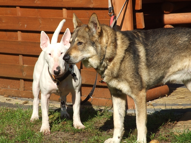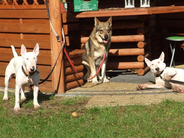 agutka Posted October 10, 2013 Posted October 10, 2013 Witamy wszystkich maniaków czworonożnych przyjacieli ;) Chciałabym przedstawić moją psicę Ledę jak i jej towarzysza Sagata. Leda została w styczniu tego roku przygarnięta ze schroniska w Gdyni, jak to większość bid w schroniskach była bardzo zaniedbaną suczką w typie bullteriera. Na codzień od samego początku nie sprawiała problemów- zostawała grzecznie sama w domku,nauczona czystości lecz ogromny problem jest na spacerach. Oceniany jej wiek na 2-3 lata z kontaktami między psimi nie najlepiej się układa- jest zbyt histeryczna i nachalna co prowadzi do sprzeczek. Sagat również przygarnięty ze schroniska jako szczeniak lecz ponad 8 lat temu ;) Piesek jest mieszańcem czego nie wiem.... wielu uważa że ma coś z wilczaka. Charakter typowy ma wilczaka- terytorialny, nieufny i bardzo bojaźliwy. p.s. jeżeli piesek w typie bulka nie powinien być w tym dziale to bardzo proszę o przeniesienie ;) Quote