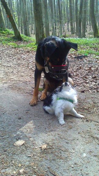 Vailet Posted April 22, 2014 Author Posted April 22, 2014 Byłam dziś z Mariką i z Dżojką na spacerze, mam aż jedno zdjęcie bo Aga nie jechała a my jesteśmy nie aparatowe. Więc: ogólnie wszystko spokojnie, Gruby raz rzucił się na jakiegoś facia, ale wtedy akurat byłam z niego dumna :diabloti: Marika opowie :lol: ogólnie na następny muszę wziąć Toffika bo z Joy by się polubili :razz: mina Joy mówi wszystko co sądzi o Grubym :biggrina: Quote