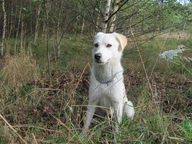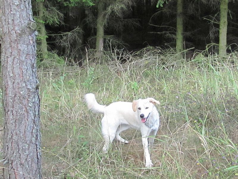 chounapa Posted August 31, 2014 Author Posted August 31, 2014 Poranny spacer się nieco wydłużył ;) A Lilo znalazła sobie nowych kumpli: Ten pomarańczowy był ogromny, takich w lesie jeszcze nie widziałam. Poza tym, Lilo bawiła się świetnie. Goniła za żabą, nie mogła przeżyć że żaba tak fajnie kica ^^ ... Ostatecznie kicała za nią dość sporo czasu. Później była jaszczurka... to dopiero był ewenement! Jaszczurka jest... i nagle znikła .... za chwile znów jest ale 2 metry dalej. Jaszczurka biegała pod igłami a Lilo nie mogła zrozumieć jak to się dzieje że małe coś się przenosi a ona nie widzi. Troszkę poskakała do motylków, a na koniec był wielki, zielony świerszcz! Aż jej się dupa trzęsła, takie było fajne. Skakała za nim, nosa mu podtykała, wąchała, znów skakała i cieszyła się jak głupia ;) I oczywiście jak zawsze po wyjściu do lasu, czas sprawdzić stan ukleszczenia domowników. Kleszcz był jeden. Jak zwykle, to ja go złapałam :/ . Quote