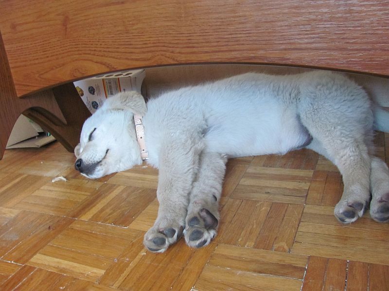 chounapa Posted July 23, 2014 Author Posted July 23, 2014 Ogłoszenie z identycznym pieskiem mówiło "mieszanka labradora z owczarkiem". Przy czym, porównując do tabeli wieku, wagi, wzrostu tych psów, w tym wieku powinna mieć ponad 20 kg ( 6-7 miesięcy, zęby wszystkie stałe ). Z drugiej strony, wzrostem do dorosłego labka już jej niewiele brakuje, jedynie waga dużo niższa. Ale labradory mają taką baryłkowatą budowę, ona jest bardzo smukła, ma długie, chude nogi.. a jak biegnie wygląda jak niedorozwinięty chart ;P Ma koleżankę, wzrostu identycznego 5kg cięższą, a również nie grubą, Tobik, jej narzeczony dużo mniejszy a waga podobna ... ona ma taką budowę i już. Jej figura mi się z seterem irlandzkim kojarzy ... wysoki, chudy pies :P. Dzień pierwszy Wczoraj Quote