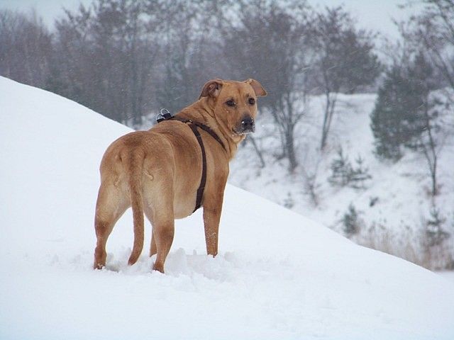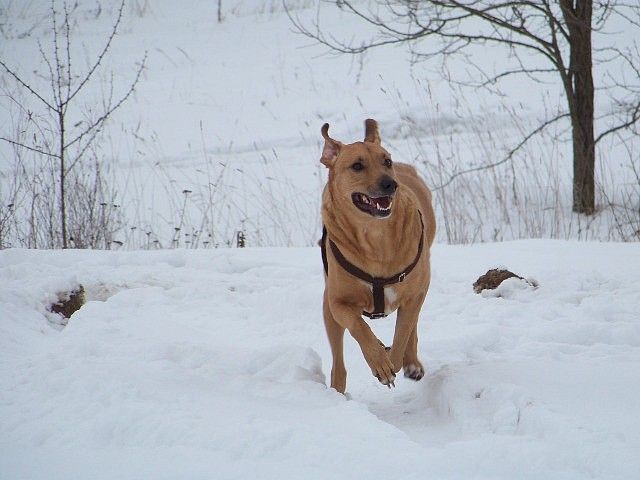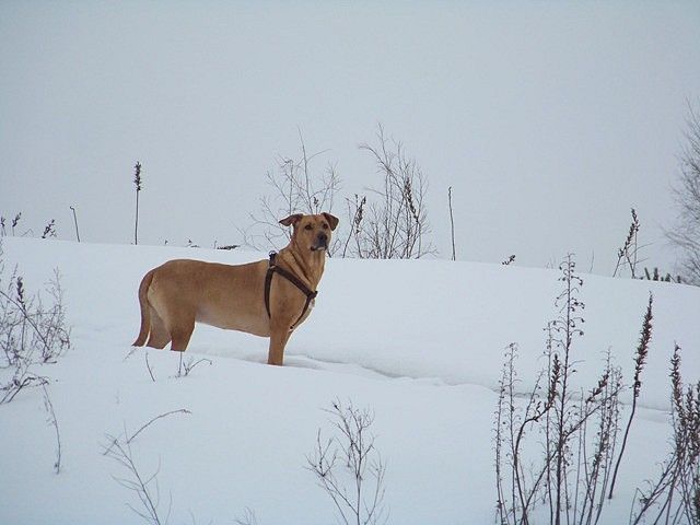 agaciaaa Posted February 17, 2012 Author Posted February 17, 2012 Dziękujemy wszystkim za życzenia zdrówka ;) Uszy i oczy już wyleczone, kupiłam Brita Care z łososiem i mam ogromną nadzieję, że ryba jej nie uczuli. Na razie wcina a ja bacznie obserwuje czy nie zacznie się znowu drapać. Jest chyba tylko jeden plus tej jej alergii - zakaz podjadania, przynajmniej na razie, bo przecież nie wiadomo tak naprawdę na co ma tą alergię (pewnie kurczak, ale może być cos jeszcze), rodzice przyjęli do wiadomosci, że tym razem naprawdę NIE WOLNO nic psu dawać, więc mam nadzieję że Sara trochę schudnie ;) wg wetki powinna schudnąć 5 do 10 (!) kg. Także dążymy do 30 kg :) Mam kilka fantastycznych fotek z komórki, znowu zapomniałam aparatu na spacer :roll: nie wiem, po co go naprawiałam, skoro przypominam sobie o nim w drodze na spacer :lol: Gdzie jest Wally? :evil_lol: Jest i Wally i krzaczek (dla zmyłki, żeby było trudniej) :lol: Tak sobie biegała - z górki i pod górkę i tak w kółko Quote