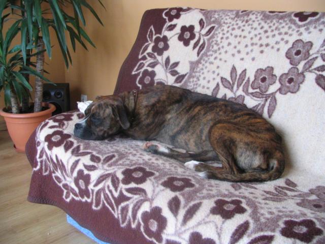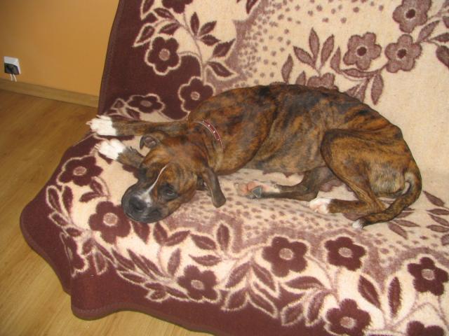 Evra Posted July 8, 2007 Posted July 8, 2007 U Gajusi wszystko w porządku, nie ma z nią najmniejszych problemów. Mądra z niej dziewczynka, dała już spokój trawniczkom, na spacerach szaleje - w domu jest grzeczna, nic nie niszczy, ładnie zostaje sama. Rozumie słowo "zostań", od razu idzie spać na kanapę. Wczoraj bardzo się przestraszyliśmy, bo Gai otworzył się szew posterylkowy i zaczęła krwawić. Na szczęście okazało się, że to nic groźnego, pani wet zapewniła nas, że rana na pewno się bardziej nie otworzy. Gaja dostała płyn odkażający do smarowania i musi nosić ubranko. Wiemy już, że bardzo boi się weta, aż cała się trzęsła, wyrywała się z podkulonym ogonkiem, nawet nie dała się zważyć. Fotki ze spacerków będą jak poprawi się pogoda. Uczymy Gaję chodzić przy nodze, bo nie umie przechodzić przez przejścia dla pieszych, ciągnie prosto pod samochód. A tak poza tym to jest najcudowniejszym boksiem świata, kochamy ją i nikomu nie oddamy. Quote