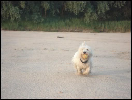 Bzikowa Posted May 31, 2009 Author Posted May 31, 2009 Dziękuję za zdjęcia:loveu: (strona do tyłu:)) Dobrze, że zrobione zanim Bezik przybrał postać zmokłej kury biegając potem w tych trawach :evil_lol: Aneta - koń jest na Białołęce ale nie wiem czy jest tak super, bo ciągle przez pogodę do niego nie jeżdżę :roll: Puchu - no ja wiem, że on prawie panienka ale bez przesady :cool3: Co to za weekend szalony dla mojego psa :lol: Wniosek jest jeden - on jest niezniszczalny :-o Sobota - pokazy, bieganko, dzieci, tłum, deszcz i ogólnie wielkie emocje... Niedziela - 2 treningi pod rząd i to w słońcu, tzn chciałam zostać na kawałku drugiego tylko a tak wyszło, że cały pobiegliśmy :evil_lol: Jak wróciłam do domu to myślałam, że pies padnie i nie wstanie 3 dni :lol: ale się przeliczyłam... :roll: tzn niby poszedł spać ale potem oznajmiłam mu, że idziemy na kolejny spacerek a Paulinie oznajmiłam, że on będzie sobie dreptał za nami bo przecież taki zmęczony kolega :evil_lol: Poszliśmy w taaaaakie genialne miejsce, nad Wisłę (nadal czuję chlupot w moich butach...:lol:) i się okazało, że piesek wcale zmęczony nie jest. Z sukcesów : wszedł do wody sam:loveu: Tylko trochę ale i tak to coś bo zawsze omijał ją szerokim łukiem... No a zdjęcia powyżej przedstawiają Bezika na rzeczonej plaży :cool3: Jak wychodziliśmy z plaży byłam już całkowicie pewna, że się zmęczył - ale nie... piesek całą drogę domagał się rzucania swojego jeża :roll: Po powrocie do domu chciałam go wytrzeć , dać michę i żeby poszedł spać ale skończyło się kolejnym podartym ręcznikiem. No, i teraz już śpi:loveu::loveu::loveu: O, i jeszcze zrobiłam takie zdjęcia moim fotoidiotą: Na plaży i w drodze powrotnej Quote