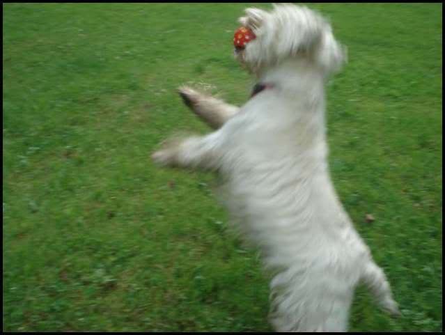 Cieszę się z tego, że w obecności psów biegał za piłeczką :D i za frisbee - nawet kilka razy pięknie złapał, moje dziecko kochane:loveu: wyściskałam go za to, to dla niego wielkie poświęcenie żeby wyskoczyć po dysk:loveu: