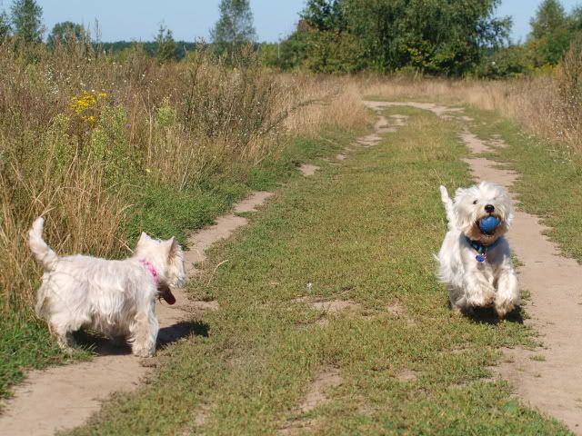 Bzikowa Posted August 20, 2009 Author Posted August 20, 2009 [quote name='*Monia*']Rozmnożony Bezik :loveu:. Przygotowujesz go na drugiego psa w domu? :razz: Nie ale szczerze mówiąc byłam bardzo ciekawa jak zareaguje na drugiego psa w domu (w życiu nie było tu żadnego innego psa oprócz Beza). I teraz już wiem, że jak w końcu się dorobię szczeniora to nie będzie problemu, przynajmniej nie ze strony Bezika :loveu: Wydaje mi się, że on stwierdził, że jak już przyprowadziłam ją do domu to znaczy, że zjadać ją to tak raczej by było nietaktowne :evil_lol: Ale ona wie, że rządzi Bezik bo np. nie wchodzi na łóżko nieproszona jeśli on tam leży, dopiero jak ją bardzo zachęcę. Ma swoją klateczkę, którą kocha i w niej się wyleguje. ;) [quote name='kaskaSz']Fajne te rozmnożenie. :cool3::loveu: http://i145.photobucket.com/albums/r223/cubree/zmniejszone/bezeziksopot1.jpg Patrzę, że Bezik podgolony przy siusiaku. ;) Wydaje się daleko wycięty, a jak jest w rzeczywistości? No fajne:loveu: Rzeczywiście na zdjęciu wygląda jakby miał cały brzuch wygolony :hmmmm: ale tak nie jest (aż sprawdziłam!), ma wygolone tak jak zwykle część brzucha żeby sobie firanki nie obsikiwał (robi to zawsze...) [quote name='J.G']Zdjęcia z Sopotu bardzo pierwsza klasa. Witam i dziękuję :) [quote name='Tebusa']Masz 2 westy i tylko kilka zdjęć... Nie bądź wiśnia podziel się z nami :eviltong: Konkretnie 2 na razie były i to identyczne , poglądowe:evil_lol: Byliśmy rano na spacerku (to był pierwszy spacer dla aparatu:lol:) i mam trochę zdjęć ale pewnie nie są zbyt piękne bo jako początkujący fotograf jeszcze zapominam o tak głupich rzeczach jak nierobienie zdjęć pod słońce :evil_lol: Zdjęcia wrzucę jak mi się naładuje akumulatorek bo się wyładował w połowie spacerku. P.S. Jurek dodał na stronę hodowli nową galerię z Bezikowym agility, tzn z różnymi fotkami ze starych zawodów: http://westie.com.pl/gallery.htm Quote