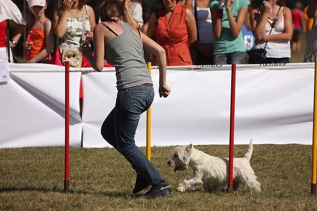 Bzikowa Posted November 22, 2009 Author Posted November 22, 2009 No a teraz jeśli chodzi o relację filmikową z zawodów... Sobotnie A1 pobiegliśmy na czysto, czas przekraczając o 0,43 sek, ale wylądowaliśmy , jak już pisałam, na miejscu 2/8. To jest ten bieg, który wkleiła Ola: [video=youtube;JVSqPpa7nWA]http://www.youtube.com/watch?v=JVSqPpa7nWA[/video] Następny bieg - agility open - pobiegliśmy z jedną odmową (nie wiem czemu nie wszedł w ten slalom, chyba dlatego, że szczekanie zablokowało mu mózg:evil_lol:) [video=youtube;tFrUhjhPUFs]http://www.youtube.com/watch?v=tFrUhjhPUFs[/video] Ostatni bieg sobotni - jumping open... Byłam już tak padnięta, że jak była nasza kolej to po prostu wystartowałam westika nie patrząc na sędziego, przed drugą hopką spotkałam się z jego plecami - DIS... No i w łącznej też dis przez to. [video=youtube;DqHTr-jNsr0]http://www.youtube.com/watch?v=DqHTr-jNsr0[/video] Niedzielne A1 - czysto ale jakieś 7 pktów za czas.. Sporo stracił na początku jak mi poleciał na ten skok w dal i go odwoływałam... No ale też 2/8 :) [video=youtube;ggb2yFSwgpg]http://www.youtube.com/watch?v=ggb2yFSwgpg&feature=related[/video] Agility open - też na czysto i też jakieś pkty za czas: [video=youtube;jSGSq8qmkOo]http://www.youtube.com/watch?v=jSGSq8qmkOo&feature=PlayList&p=38B1772C45D0169C[/video] Jumping open - z jedną zrzutką ale z mojej winy. Niestety filmiku brak... Quote