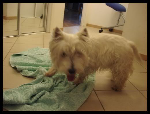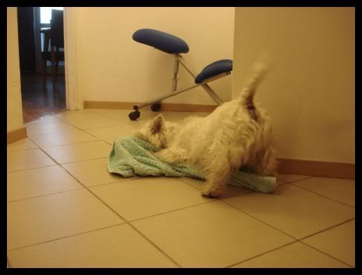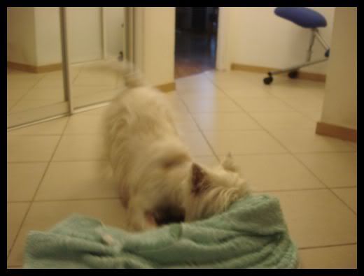 Bzikowa Posted August 24, 2007 Author Posted August 24, 2007 No dobrze, wklejam jeszcze (chyba) ostatnią już serię zdjęć przed wyjazdem :cool3: tadam! Jeśli jeszcze nie wiecie, to Bzika ulubioną zabawką jest ręcznik :diabloti: Więc jak wczoraj (czy tam przedwczoraj...) wróciliśmy z deszczowego spacerku, pies grzecznie poczekał przed drzwiami aż przyniosę ręcznik a potem się na niego władował... I postanowił dostać głupawy... Biegał przez bite 15 minut po mieszkaniu pod ręcznikiem, właził pod niego, podrzucał, grzył, szarpał się ze mną... I zasadniczo zachowywał się... dziwnie :stupid:Ale ja luuubię te jego fazy ! :jumpie: Niestety zdjęcia tego nie oddają a nie wkleję tu tych wszystkich okropnie rozmazanych :eviltong: Quote