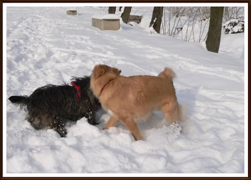 Rudzia-Bianca Posted January 17, 2010 Author Posted January 17, 2010 [quote name='katik']Ten Mały to prawie jak Cairn Terier. Co z nim będzie, jest gdzieś ogłaszany? Mam nadzieję, że długo nie będzie czekał. Nie znam się na rasach , ja zawsze kundliszony miałam ;) Mały jest na razie ogłaszany jako zaginiony na terenie Myślenic, dziś na spacerze uświadomiłam sobie że mógł uciec komuś kto przyjechał na ten cholerny stok narciarski :( przyjeżdżają całe rodziny z psiakami z różnych miejscowości - mam nadzieję że się mylę :( [quote name='Pliszka']To czekamy na zdjęcia ze spacerku :) Zazdroszczę słonka, bo u mnie za oknem śnieżyca i potworny wiatr. Trzymam kciuki, żeby telefon zadzwonił. Słonko Pliszko wybitnie mnie chyba jednak nie lubi, bo ledwo wyszłyśmy na spacer zaczęło się chować :( Telefonu do tej pory żadnego :( czyli raczej nikt nie rozkleja ogłoszeń że go zgubił , bo musiałby w tych samych miejscach co ja :( Za to są zdjęcia spacerowe łotrzyków ;) proszę jaka zgodna parka :) Quote