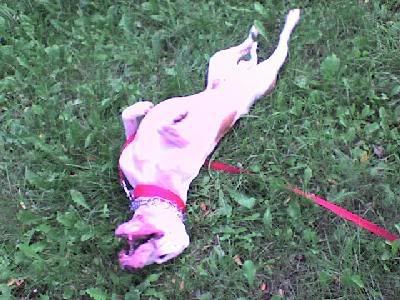 Jenny19 Posted August 20, 2008 Posted August 20, 2008 Właśnie wróciłam ze schroniska,pani się zgodziła bez problemu żeby Ada przyjeżdżała.:-) Nasz dzisiejszy spacer nam za bardzo nie wyszedł.Tam gdzie zazwyczaj chodziliśmy był jakiś pan z luzem puszczonym pieskiem,a że Dragon był dzisiaj bez kagańca więc zrobiłam błyskawiczny odwrót,chyba nawet nas nie zauważyli.Poszłam więc w kierunku Sosnowca,ale tam niestety z sąsiedniego zakładu wybiegły 2 psy,jeden rosły mieszaniec owczarka niemieckiego,także się znowu musieliśmy ewakuować,tzn.ja próbowałam nas ewakuować,bo Dragon był bardzo chętny na mały sparing:mad: Także pochodziliśmy trochę wokół schroniska,a później na terenie schroniska za parkingiem przywiązałam Dragona do drzewa i oddał się swojej ulubionej zabawie-czyli tarzaniu się w trawie.;) Kagańca dzisiaj nie miał bo niestety ta rana na pysku,o której ostatnio wspominałam się bardzo rozpaskudziła,jątrzy się i leje się z niej brzydka zielona ciecz,na spacerze zlatywały się do tego roje much:-o Obejrzała to chyba pani doktor w schronisku i powiedziała,że bez interwencji chirurgicznej się nie obejdzie,jutro mają to przedyskutować.Tą ranę Dragon sobie chyba zrobił na kratach zewnętrznych boksów,gdy się rzucał na sąsiednie psy,wewnątrz jest oddzielony boks więc ich nie widzi i nie szaleje, na zewnątrz jest niestety inaczej. ps.proszę nie bić i nie krzyczeć za kolczatkę,była cały czas kolcami do góry-słowo honoru;) niestety spacery z Dragonem nadwyrężyły zapięcie w czerwonej obroży a że ja panikara jestem i wole dmuchać na zimne to chodził w 2 tak na wszelki wypadek jakby zapięcie w czerwonej puściło:cool1: Quote