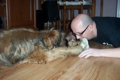 Vasco Irjar Posted February 14, 2008 Author Posted February 14, 2008 We w Walentynki skończyłem 6 miesiąc życia!!! Dali mi prezent. Położyli go na podłodze.... przyjąłem pozycje rozpoznawczą hmmm...... zawsze jem jak mi Alfa (Jarek) pozwoli..... a dzisiaj? Poczekam... O! Alfa dał znać, pewnie jest to zjadliwe No pewnie, że zjadliwe ...... mmmmmmmmmmm Wpadłem w trans obgryzania Ech..... fajnie jest mieć półroczku i to w Walentynki żółwik Vasiek ps. dodam, że kość jest cielęca i spod lady ;))) To znaczy przyniesiona z zaplecza schowana dla Vipów..... Babcia ma chody w mięsnym !!! Quote
