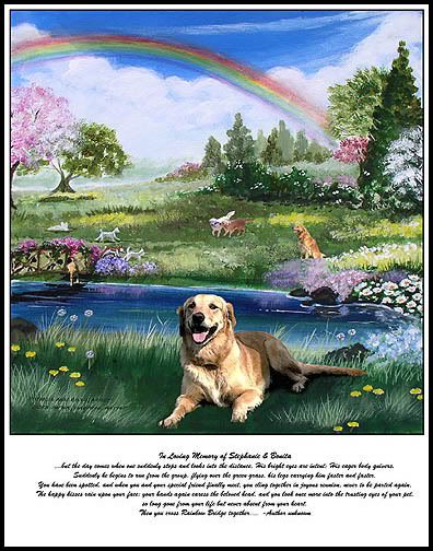 SiberijaEl Posted February 18, 2008 Posted February 18, 2008 Rainbow Bridge Just this side of Heaven is a place called Rainbow Bridge. When an animal dies that has been especially close to someone here, that pet goes to Rainbow Bridge. There are meadows and hills for all of our special friends so they can run and play together. There is plenty of food, water and sunshine and our friends are warm and comfortable. All the animals who had been ill and old are restored to health and vigor; those who were hurt or maimed are made whole and strong again, just as we remember them in our dreams of days and times gone by. The animals are happy and content, except for one small thing: they each miss someone very special, someone who was left behind. They all run and play together, but the day comes when one suddenly stops and looks into the distance. His bright eyes are intent; his eager body begins to quiver. Suddenly, he breaks from the group, flying over the green grass, faster and faster. You have been spotted, and when you and your special friend finally meet, you cling together in joyous reunion, never to be parted again. The happy kisses rain upon your face; your hands again caress the beloved head, and you look once more into those trusting eyes, so long gone from your life, but never absent from your heart. Then you cross the Rainbow Bridge together.. Quote