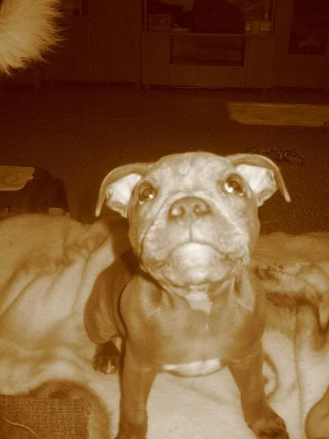 Martens Posted December 29, 2009 Author Posted December 29, 2009 Buc szaleju się najadł wczoraj, zbliżył się do granic mojej cierpliwości - za to dziś odsypia na szczęście :p *Monia*, nos mały jeszcze ma na szczęście, tylko trochę kłaków gdzieniegdzie mu Barył wyrwała :D Myślimy (albo myśleliśmy) jechać w kwietniu do Nowego Dworu na wystawę co by zadebiutować w szczeniakach jakoś niedaleko od domu - i zaczęłam szukać info o panu sędzim (dobrze napisałam?), który będzie oceniał. Miałam właśnie Vectry pytać co sądzi o panu Królu, ale znalazlam wypowiedź na stafficzym forum i chyba już wszystko wiem :evil_lol: Quote