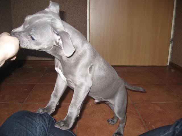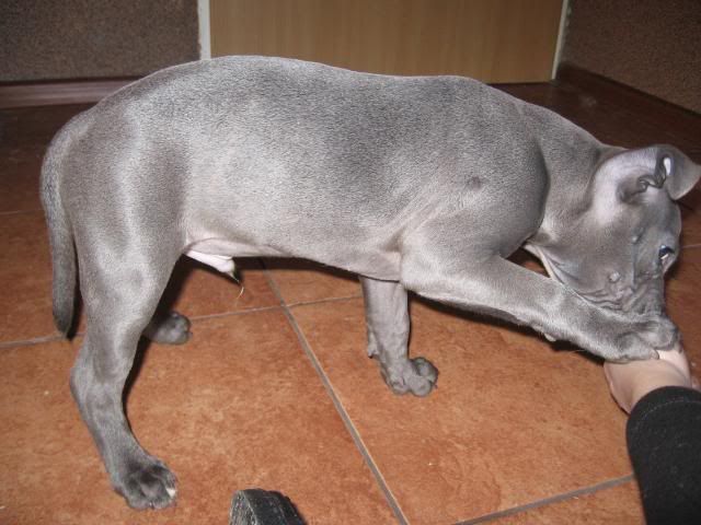 Martens Posted December 30, 2009 Author Posted December 30, 2009 Pusiakowa napisał(a):przywitam się. :) No witamy, witamy :p agaciaaa napisał(a):http://i302.photobucket.com/albums/nn104/Blackpoint/IMG_3967.jpg miny to on robi genialne! :lol::lol: To akurat mina zbulwersowanej żaby :p Vectra napisał(a):no to się pewno spotkamy , ja jeszcze rozważam Rzeszów , aczkolwiek nie wiem czy dostane rodowód eksportowy dla Emila ... z tym że Rzeszowski arbiter też mnie nie wali na kolana .. aczkolwiek ten z NDM to bije wsie rekordy. Tą wystawe mam najbliżej , ale niestety nie dane mi na nią jechać - lepiej przepić tą kasę ... ja z tym arbiterem , to miałam sparing słowny na ringu hahaha jesooo jak oni będą takich sędziów dawać , to Emilian będzie wystawiony dopiero w klasie weteranów ... bo jak ja mam się tłuc przez pół polski , żeby posłuchać bzdur , to wolę w TV popatrzeć :evil_lol: My do Rzeszowa raczej nie, ale majówka w Łodzi być może ;) o ile TZta wciagnie wystawowa machina, bo on majówkę widzi raczej nad jeziorem pod namiotem (i ja też w sumie nie mam nic przeciwko). Daleko się w tym roku nigdzie nie wybieramy, bo szczyl młody, i tak dla wprawy chcemy pozwiedzać te co bliższe wystawy; jak już dorośnie i kupimy sobie auto, to wybierzemy się gdzieś dalej. (Btw TZ do tej pory czasem cierpi, że za Bucefała miałby całkiem dobre używane auto :evil_lol: ) Btw co temu panu powiedziałaś tak dokładniej, bo ciekawość mnie zżera :diabloti: I jak możesz to oświeć mnie trochę, kto dobrze sędziuje w staffikach, bo ja jestem cichociemna w tym temacie... Czarnulka napisał(a):Piękne footki i ten twój maluch jest przeuroczy wziełabym sobie takiego stafika w takim kolorze jak on;):loveu: oprostu cuudo :loveu: Ja wiem, że on ładny na zdjeciach, ale jesteś pewna że chciałabyś taki jazgotliwy pomiot szatana? :eviltong: Barył był dziś na wizycie u naszego cudownego nowego wiejskiego weta :cool3: Dziś ze starym doktorem nie było miłej pani, tylko przystojny młody pan weterynarz-świeżaczek :cool3: Barył i jej tarczyca bardzo go zainteresowały, wyoglądał ją, wymacał, przejrzał wszystkie jej badania krwi - obaj panowie byli uradowani i mówili, że co jakiś czas trafia im się pies, u którego stwierdzają niedoczynność, tylko zwykle widzą go wtedy pierwszy i ostatni raz; w moich okolicach raczej niewielu jest ludzi naprawdę dbających o psy, a dogomaniaków jest troje w całym powiecie :p Nareszcie znalazłam weta, który rozsądnie podchodzi do kwestii szczepień, rozwiązał jeden nasz tarczycowo-szczepieniowy problem, ale chyba o konkretach nie wypada pisać publicznie :p Tak więc wrażenia bardzo pozytywne, za tydzień znowu jade z małym na kolejną porcję Advocate. Nie wiem czy pisałam, miał dwa małe przełysienia na ryjku, ale już powoli znikają, za to przybywa kropek bez sierści po tym, jak Baryła go "puka" czasem w makówkę :roll: Mam trochę fot z wczoraj, jak zwykle średnio udane, bo mój aparat starzejący się już nadaje tylko do martwej natury; próbowałam malca trochę pouczyć postawy wystawowej, ale średnio szło z foceniem w dodatku; za krótkie ręce i za mało ich ;) Quote