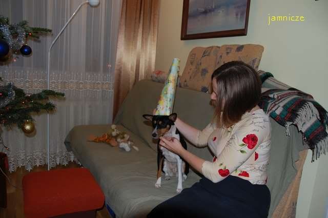 jamnicze Posted January 3, 2009 Author Posted January 3, 2009 Był już noworoczny spacerek, to teraz Sylwestrowa Noc :grin: Chciałam też Saidi założyć do zdjęcia czapeczkę ale żadnej nie miałam :roll: no to zrobiłam rulonik :evil_lol: oczywiście nie za bardzo chciał sie trzymać na główce :diabloti: oj, Pańcia daj sobie spokój :eviltong: :shake: Quote