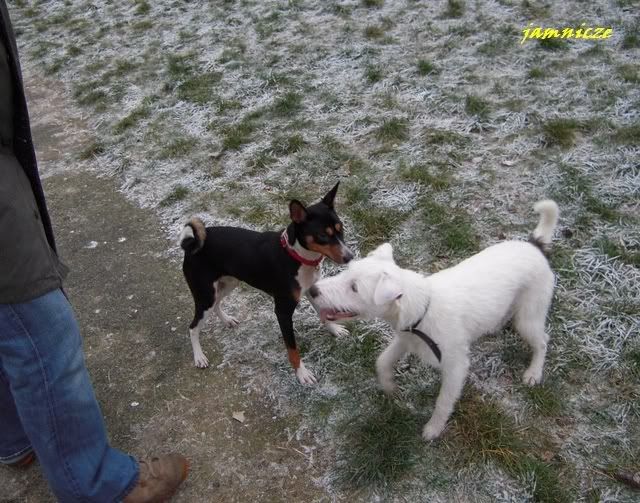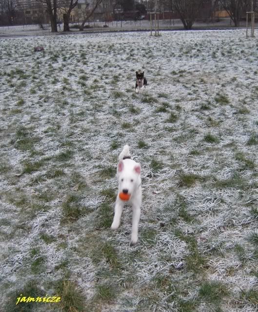 jamnicze Posted January 2, 2009 Author Posted January 2, 2009 No to ciąg dalszy spacerku (bo już czekają fotki z Sylwestra :razz:) Zabrałam ją znad tej wody i po drodze poznałyśmy nowego kumpla :) Reksio :loveu: - parsonek, młodszy od Sajduni o 1,5 miesiąca i jak się okazało byliśmy na tych samych wystawach :evil_lol:. Jak widać bardzo nakręcony na piłkę, hej, on sie nie chce ze mną bawić Quote