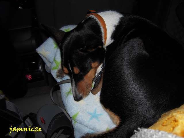 jamnicze Posted March 2, 2009 Author Posted March 2, 2009 Aby skończyć wątek wystawowy ostatnie zdjęcia: Zmęczone wracamy do domu :) Saidi jako towarzyski pies może spać też na innych kolanach dając tym radość młodej koleżance :loveu: I w domku, w końcu na własnym posłaniu :p Za radą Asiaczka kupiłam na wystawie Saidi miski na stojaku (teraz ma ustawione nieco wyżej niż na zdjęciu) Quote