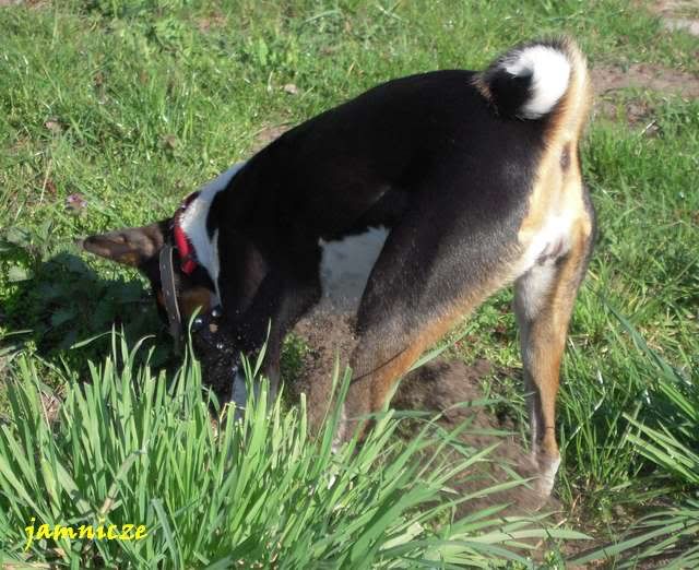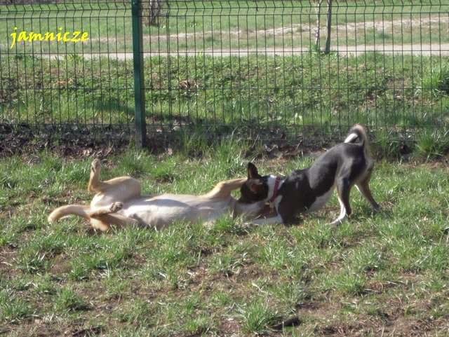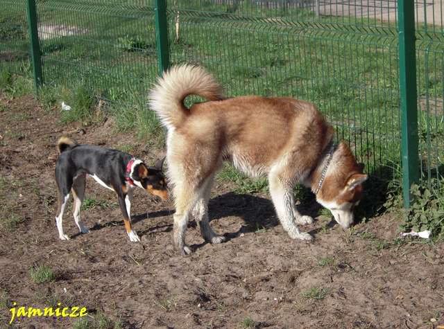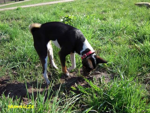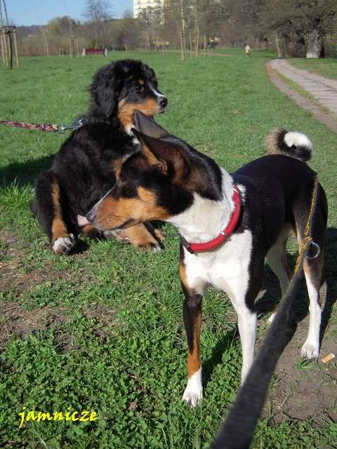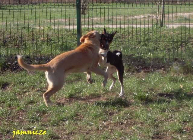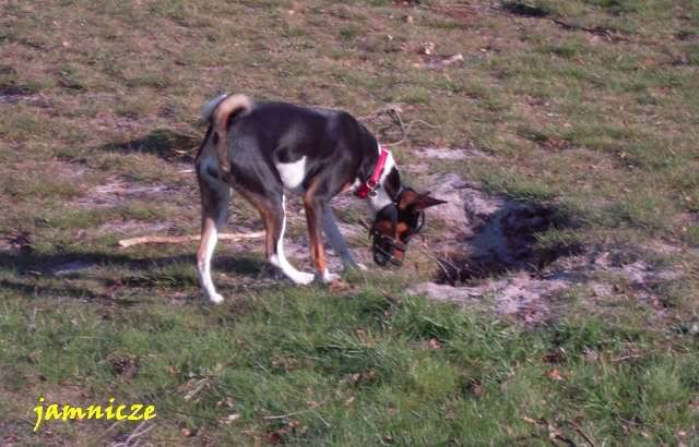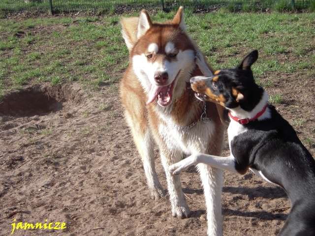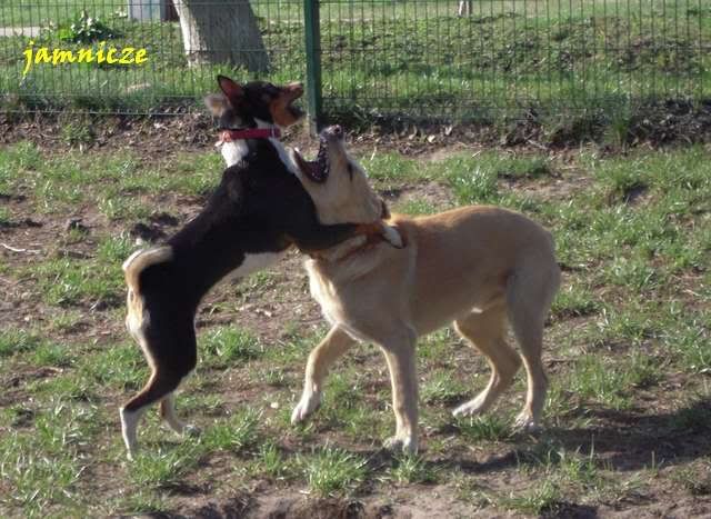 jamnicze Posted April 30, 2009 Author Posted April 30, 2009 [quote name='Maks i Spark']no jakie fajne:multi:....i berneńczyk, pasowałby kolorystycznie do Sajdi;) a scena z jednego polowania....super i kolejny raz się potwierdza naocznie, że masz piranię-baska:evil_lol: A. Kiedy ona na prawdę jest taka łagodna :loveu: no prawie, dorastać mi babsko zaczyna i dzisiaj ... ... już o 8.00 Saidi nie mogła w domu wytrzymać i kręci sie kręci aby juz wyjść. No dobra, to wzięłam ją te 10 min wcześniej (byłyśmy umówione z Goldim), założyłam kaganiec i puściłam przed domem. A tam na smyczy była też młoda sunia - mi z dużą domieszką haszczorka. Saidi oczywiście jak tylko ja zobaczyła to pędem do niej, a ta z zębami :angryy:. Moja w kagańcu, tamta na smyczy więc zanim dobiegłam pan sobie poradził, ale Saida nie odpuszczała :crazyeye:. Najeżona i bulgoczącą zabrałam, kawał drogi dalej ja puściłam, a ta menda w tył zwrot i dawaj do tamtej suni. Stanęła dobry krok od niej i się gapi, niestety tamta znowu sie rzuciła, no to Saidi na nią :mad:. Szybko wzięłam ją na smycz i koniec było swobody :obrazic: Quote