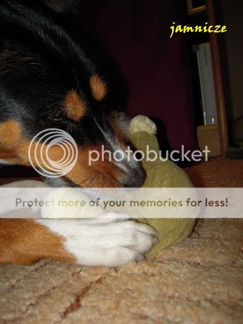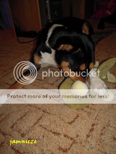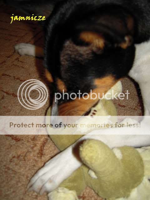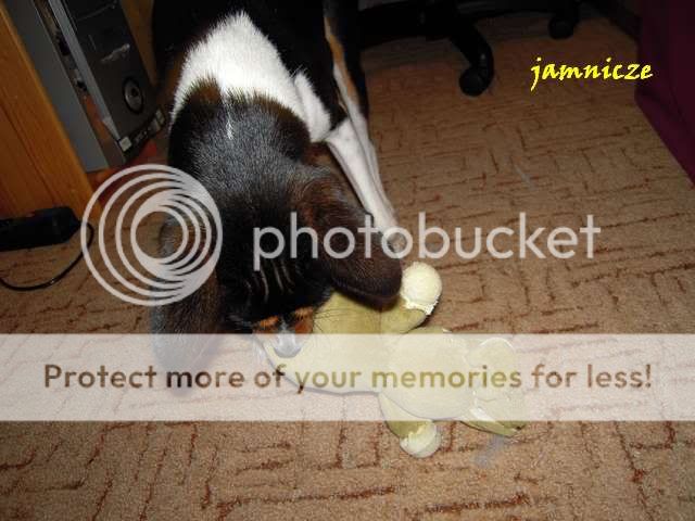 jamnicze Posted February 4, 2010 Author Posted February 4, 2010 Myślałam, że słonik i królik dotrwają do Bydgoszczy gdzie ma Saidi obiecanego pluszaka, ale słonik był już tak rozmemłany, że nie przetrzymał. Ja nie wiem co w nią wstąpiło, wcześniej lubiła sobie tylko je pociamkać, oczywiście po uprzednim wyskubaniu oczek ;), a teraz się nauczyła, że w środku jest coś fajnego, białego i można to wyciągać, no i stało się to najlepszą jej zabawą. Raz tak ponad pół godziny się bawiłyśmy, ona wyciągała flaczki, a ja je wpychałam i tak w kółko :) Nudzi się psica w domu. A teraz jest świeżutko po kąpieli zawinięta w kocyk i śpi :) Quote