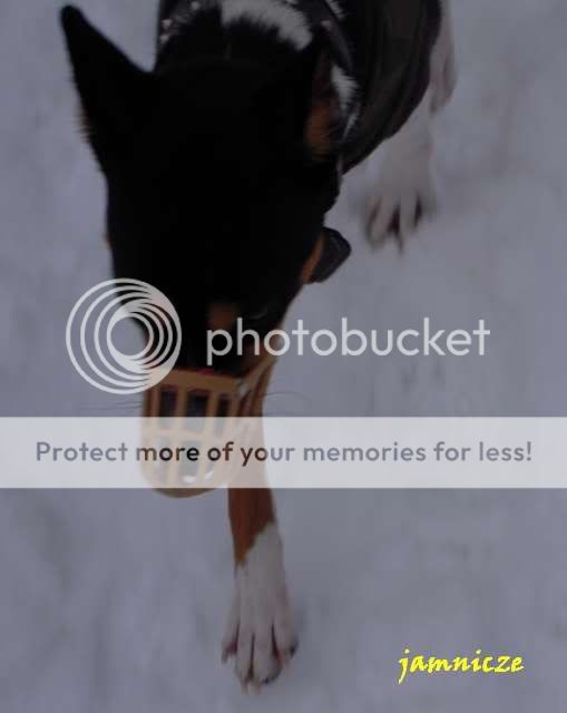 jamnicze Posted February 11, 2010 Author Posted February 11, 2010 Dzisiaj tłusty czwartek, wciągnęłam 4 pączki :crazyeye: i ledwie się ruszam, dobrze, że mała nie wyciąga mnie jeszcze na spacer, bo chyba bym spadła ze schodów :evil_lol: A teraz prezentujemy nasz nowy kaganiec. W końcu po 1,5 roku poszukiwań udało mi się dostać plastikowy namordnik. I miałam rację, spisuje się o wiele lepiej od skórzanego i Saidi tak nie kaprysi przy zakładaniu. no zdejmij mi to już Quote