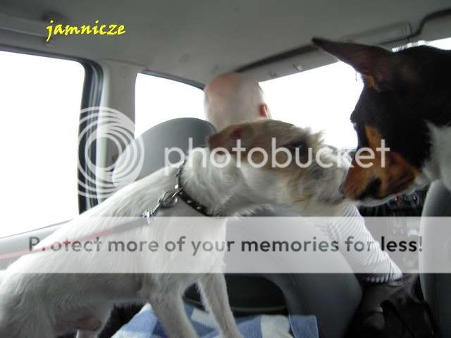 jamnicze Posted February 15, 2010 Author Posted February 15, 2010 [quote name='Maks i Spark']GRATULACJE dla CHAMPIONKI !!!!!!! :) A. serdeczne dzięki :) Jechaliśmy do Bydgoszczy małą ekipą, czyli Saidi i dwa parsonki :) Z tyłu byli Saidi i Sadik, no i po krótkim poznaniu zaczęły się psie harce (co chwilę zamieniali się tez miejscami (bo te drugie kolana są pewnie wygodniejsze :) Reksio siedział z przodu, bo trochę z Sadikiem na siebie burczeli, oczywiście chodziło o względy panienki ;) Quote