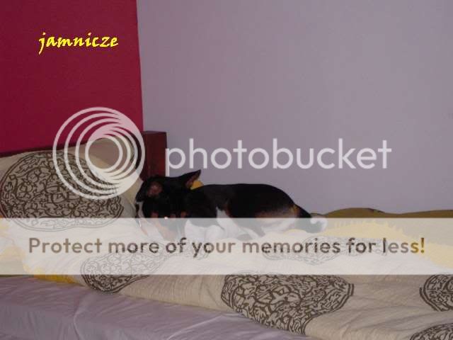 jamnicze Posted February 18, 2010 Author Posted February 18, 2010 No to ciąg dalszy relacji z Bydgoszczy. Zmęczone psiaki musiały się wyspać przed następnym dniem. Niesamowite, ale jak weszłam do pokoju, to postawiłam plecak na jednym z łóżek, wyjęłam rzeczy i zdjęłam plecak. Poszliśmy się myć i zrobić sobie herbatkę, Saidi w tym czasie poznawała pokój, korytarz i kuchnię. Jak już się zamknęliśmy w pokoju, to od razu wskoczyła na łóżko gdzie wcześniej leżał mój plecak - zupełnie jakby wiedziała, że tam właśnie będziemy spały. :) Trzeba sobie wymościć legowisko jaka jestem senna .. a mi się jeszcze nie chce spać, kto się ze mną pobawi? Quote