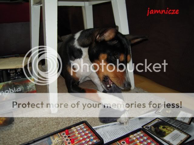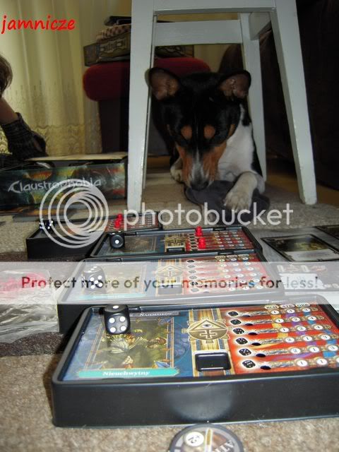 jamnicze Posted February 27, 2011 Author Posted February 27, 2011 Postanowiliśmy przy niedzieli trochę się odprężyć i z TZ podrać w planszówkę, a że dużo miejsca zajmuje, to rozłożyliśmy się na podłodze. Saidi była nieco znudzona próbowała pomagać mi i rzucać kośćmi (ale wyniki nie były zadowalające ;)) i postanowiła ukraść mi gumkę złodziejka jedna :) Quote
