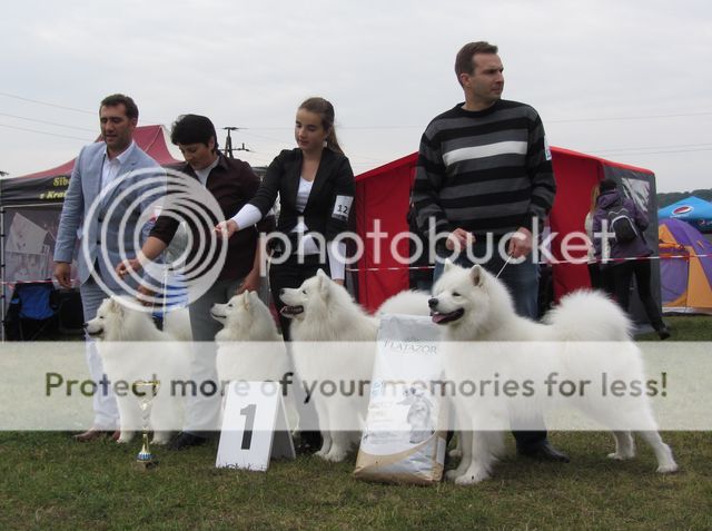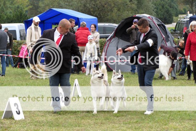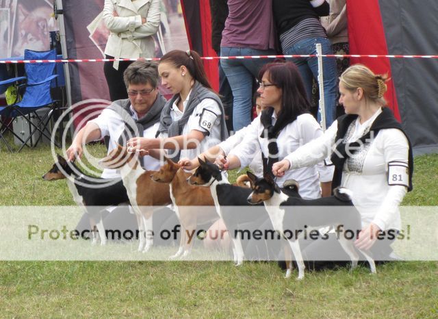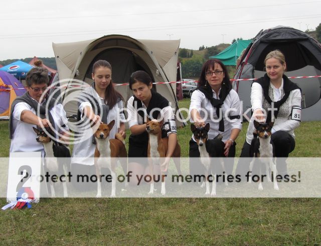 jamnicze Posted September 23, 2012 Author Posted September 23, 2012 Pracowita sobota za nami :) Adusia debiutowała w klasie młodzieży i dostała swój pierwszy medal :) brązowy :) Saidi startowała w klasie otwartej i otrzymała ocenę doskonałą i medal srebrny. Pomagałyśmy też Asiaczkowi w konkurencjach hodowlanych: Ada walczyła dla tatusia Serka, który został najlepszym reproduktorem klubu!!! Saidi walczyła dla mamusi Felki, która została drugą suką hodowlaną klubu!!! Potem jeszcze świętowaliśmy Zwycięstwo Świata Dżezika :multi::multi::multi: Pogoda dopisała, dopiero nadeszła burza i trochę popadało na koniec konkurencji finałowych. Emocji i wrażeń pełno. Było mi bardzo miło spotkać się i pogadać z innymi hodowcami i właścicielami basenji. Jest nas coraz więcej i na prawdę mamy piękne basenji w Polsce :loveu: A teraz parę fotek z konkurencji hodowlanych: Felka i jej dzieci :) wygrała sunia samojeda, trzeba przyznać, że też prezentowali się pięknie :) Quote