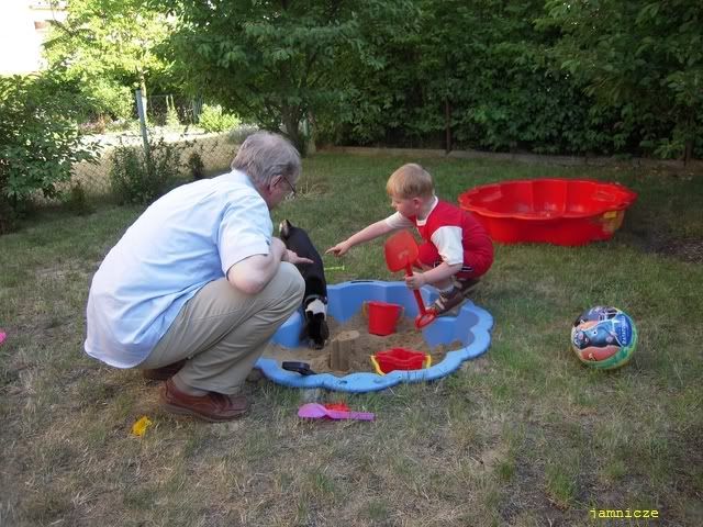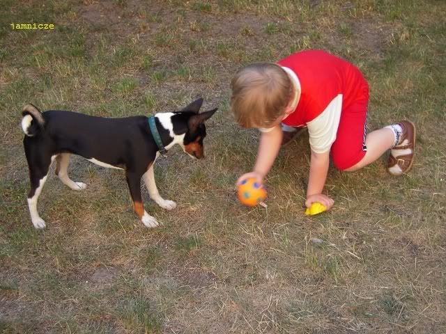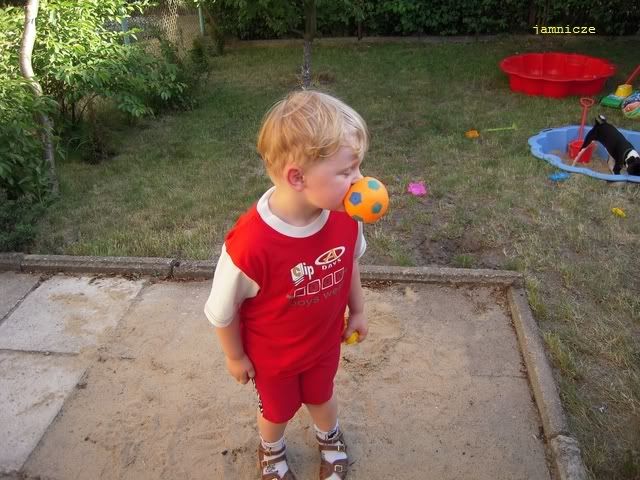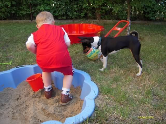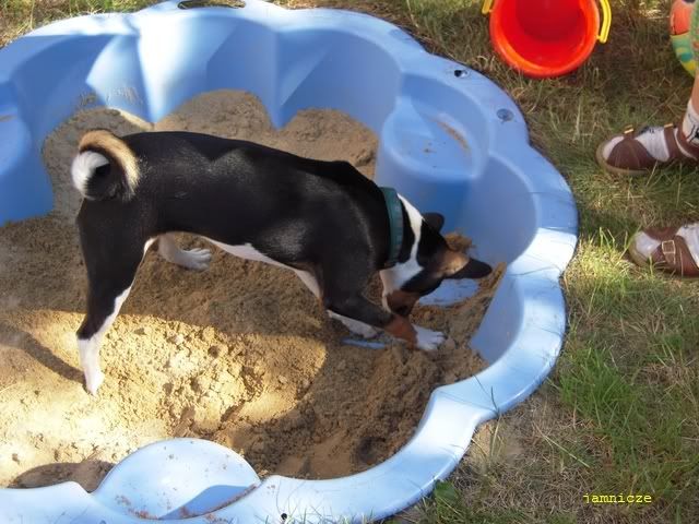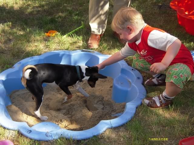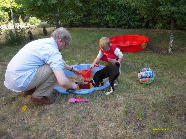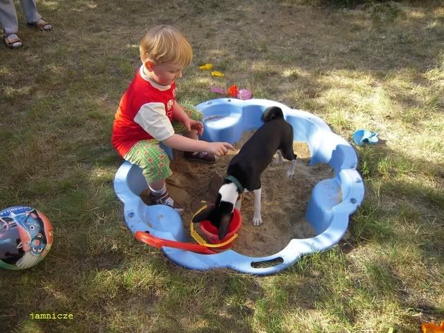 jamnicze Posted June 7, 2008 Author Posted June 7, 2008 Na Dzień Dziecka byliśmy u rodzinki z wizytą. Sajdi pierwszy raz miała do czynienia z małym, wszędobylskim brzdącem :diabloti:. I moja dziewczyna sie spisała - zero agresji, nawet piłkę dawała sobie odbierać, a mały po prostu oszalał na jej punkcie i wszędzie za nią chodził :evil_lol: Kilka fotek: O, jaki ładny piaseczek, może zakopali w tych babkach jakieś skarby? trzeba dorobić nowe babki może ja pomogę? Quote
