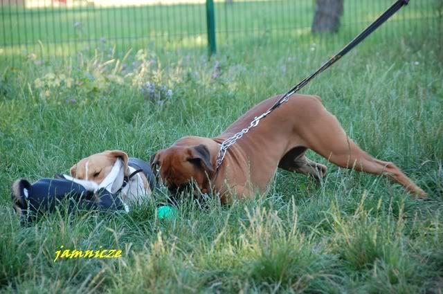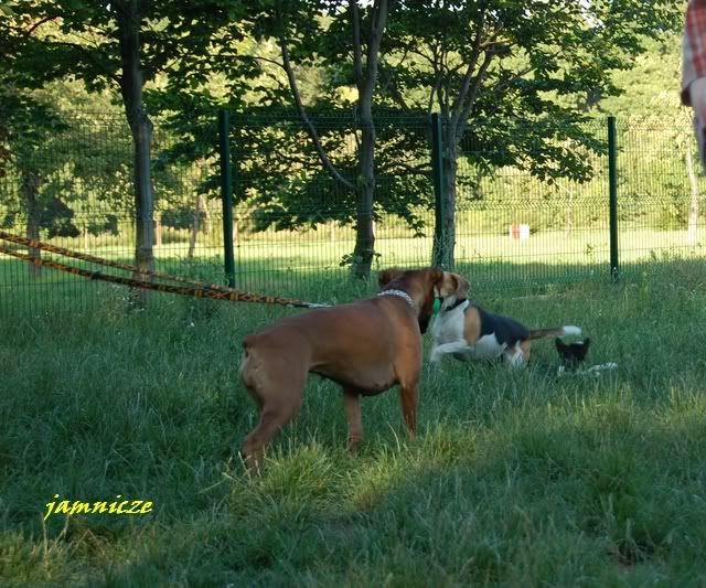 jamnicze Posted August 15, 2008 Author Posted August 15, 2008 Jak rodzinka poszła na plażę oglądać piaskowe budowle, my z Sajdunią udałyśmy się do psiego ogródka. Był już zajęty, ale jak pani zobaczyła, że grzecznie z Saidi sobie czekamy przy płocie zaprosiła nas do środka i wzięła boksię na smycz :p A Saidi mogła poszaleć z druga sunią Oczywiście wiadomo która zaczepiała :diabloti: jak nie za uszko, to możne za łapkę? Quote