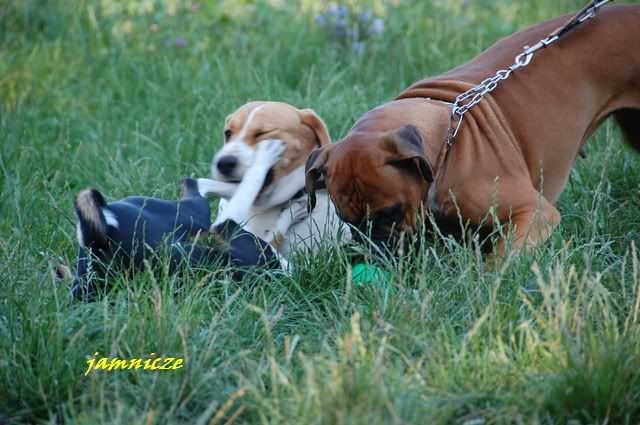 jamnicze Posted August 15, 2008 Author Posted August 15, 2008 biedna boksia przyglądała się maluchom z zaciekawianiem a wstręciuchy nawet piłkę jej zabrały Quote