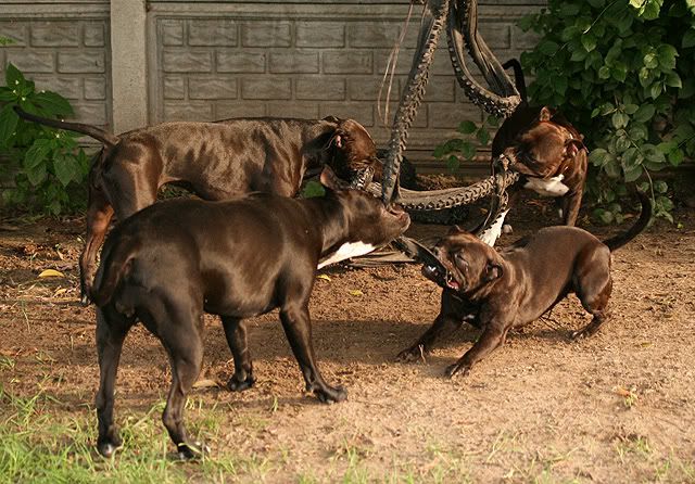 Vectra Posted July 22, 2009 Posted July 22, 2009 Daga spójrz na mój baner , może wejdź do mojej galerii ? może obejrzyj zdjęcia ... Zobaczysz ... Jak żyją moje 4 terriery typu bull - razem :) Podpowiem Ci , mam dwie suki w typie pitbulla - przygarnięte i dwa staffiki I wtedy sobie sama odpowiesz na pytanie , które mi zadałaś Np tu masz , pozorowane walki , zabawa siłowa , którą kochają ile na spacery poświęcam ? tu się nie liczy w minutach , gadzinach ... bo to nie idzie o długość spaceru , a o jego jakość .... przynajmniej 3-4 godziny dziennie ... psy biegają za piłką , ciągają się , wiszą na oponach .. do tego gonitwy , nawalanki ... Nie znam Twojego psa , ani tego psiaka ze schroniska ... ale myślę , że przy dobrych wiatrach , podejściu , chęciach , wiedzy ... da się .. Mój samczy staffik nie toleruje obcych psów .. a ze swoimi domowymi towarzyszami , je z jednej miski .. więc też nie ma reguły ... że nie tolerujący psów TTB , nie zaprzyjaźni się z psem swoim ... To też zależy od psa którego masz Quote