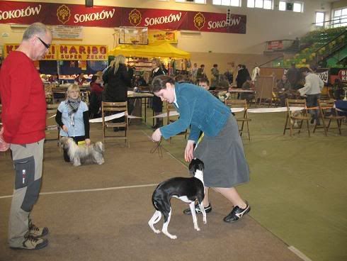 ja nie startowałam :P:P ale nie było figur, bo ring wielkości kantorka na miotły, więc tylko przejście w linii prostej w te i spowrotem i ustawienie psa przed sędzią..