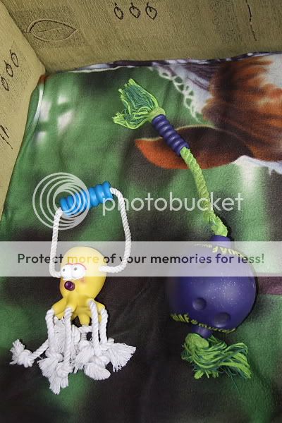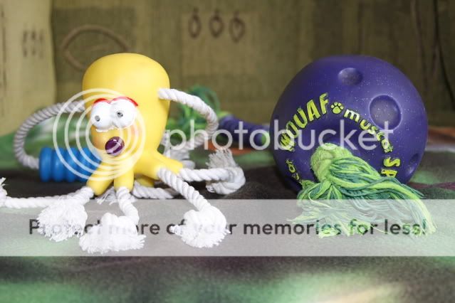 Kinia Posted June 24, 2009 Author Posted June 24, 2009 Żeby nie było, że nic nie wstawiam, zobiłam na szybko zdjęcia zabawek, które większość swojego "życia" spędzają w półce;) 1.Ręcznie robione: 2. Kong na sznurku, piłka na sznurku i piłka za którą eM nie przepada (nie nadaje się do przeciągania) 3. Piszczące idealne do przeciągania zabawki. Muscat to miłość eM, a ośmiornica to nowy nabytek Quote