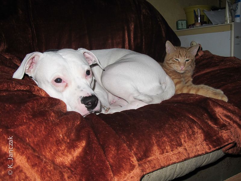 Okamia Posted November 4, 2012 Author Posted November 4, 2012 [quote name='Asiaczek']Nooooo, u mnie to się czasami zdarza.... Widac, że zaprzyjaźnieni, kici pewnie ciut ciasnawo, ale za to ciepło:) http://i1221.photobucket.com/albums/dd466/OkamiaK/Zwierzaki me/IMG_0075_zpsb287557b.jpg Pzdr. On się potrafi rozepchać tak, że to Neli jest ciasno. Ale cieszy mnie to, że nie ma problemu z tolerancją Lucyfera :loveu: Dziś miałyśmy pierwszy niedzielny wypad do parku w 3 czyli ja, Kell i Procha. Zazwyczaj w weekendy nie chodzę z nimi do parku, a już zwłaszcza razem. No i masz. W Nels przy mijaniu piesków wyłączył się móżdżek w towarzystwie Kelly i chciała je wszystkie na poważnie kill... Eh... chyba będę zmuszona chodzić na spacery do parku w weekendy z obiema sukami :roll: aby wypracować jej to bo nie mam zamiaru nie chodzić tam raz na jakiś czas w weekendy... Po raz pierwszy będąc z obiema sukami na raz wzięłam aparata ze sobą... no i nawet można powiedzieć że mają wspólne focie :evil_lol: Kells nie prezentuje się okazale z powodu zrzucenia podszerstka ale co zrobić ... Quote