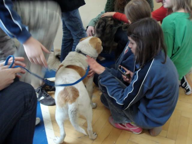 Eruane Posted March 23, 2009 Posted March 23, 2009 Dziś z Ewelinką byłyśmy na tym wykładzie w szkole, który okazał się w sumie podziękowaniem za zbiórkę karmy. ;) Ale nie o tym chciałam. Była z nami moja sunia i Łatek. Łatek był fenomenalny. Stoicki spokój cały czas. Na sali gimnastycznej było bardzo głośno, tłoczno, dziesiątki rąk wyciągały się do psów. Na Łatku nie zrobiło nic wrażenia. W stosunku do mojej Ituśki zachowywał się bardzo kulturalnie. Dzieciaki uwielbia, był wręcz nieco zazdrosny, kiedy głaskały Ituśkę i domagał się pieszczot, choć w sposób bardzo delikatny. Ani hałas, ani wielkie kolumny z tyłu, ani rój dzieci - nic nie robiło na nim wrażenia. A kiedy przyszedł czas na bliskie spotkanie z widownią, był tak wniebowzięty, że nie chciał od nich odejść. Prawdziwy pies dogoterapeuta. ;) Taka impreza to niezły test dla psa, a Łatek zdał go na medal.