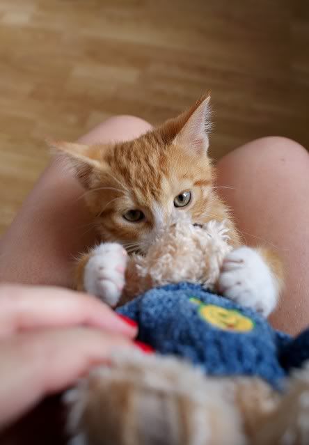 rufusowa Posted July 28, 2009 Posted July 28, 2009 przedstawiam Wam nowego członka stada ;) zwie się Marcel tudzież Marceli, zwany również Rudym lub gałganem :p do domu przyniosła go moja siostra bojąc się samotności po mojej wyprowadzce z psami (z naciskiem na psy) kot...wiadomo...lepszy, bo nie trzeba z nim wychodzic na spacery :cool1: Nie wiemy jeszcze czy u nas zostanie, bo alergiczka, ktora go oddała bardzo za nim tęskni i być może będzie chciała go z powrotem... :p Quote