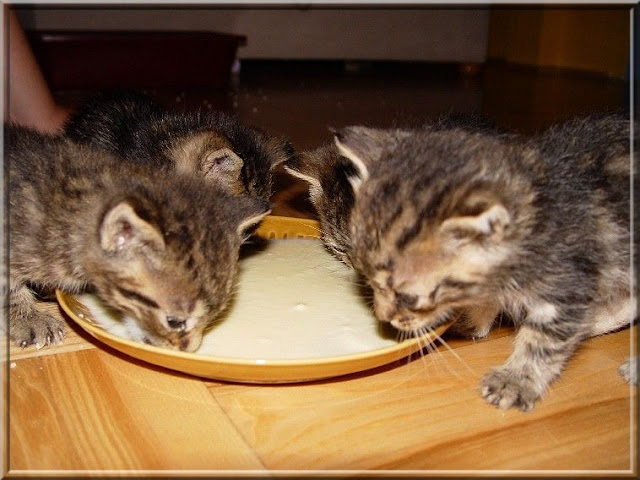 Poświata Posted July 29, 2010 Author Posted July 29, 2010 Alu nie mają, bo nie bardzo miałam czas na miau. Próbuję się jakoś zorganizować. Mleko zamówiłam u weta, będę miała jutro. Póki co dostają ludzkie w proszku. Karmię strzykawkami i podtykam mleko na łyżce do wylizywania. Przy czwórce osesków to trwa :cool3:. Wysłałam Wojteckiego po flaszki ze smoczkami i jakieś inne papuniu niż mleczko, bo wyczytałam że jak malce są bez matki to już od 4 tygodnia mogą zacząć jeść pokarm stały. A Okruszki jedzą, śpią, garną się do człowieka, próbują się bawić między sobą, na chwiejnych nóżkach robią małe wypady po pokoju... i tak w kółko :evil_lol: Quote