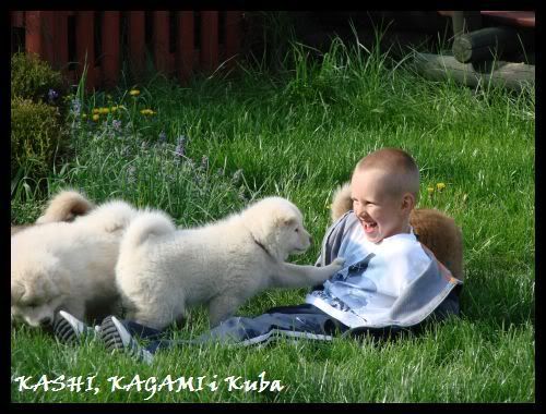 Kasia_i_Łukasz Posted July 21, 2008 Author Posted July 21, 2008 Dla wielbicieli białych akitek i nie tylko, kolejna "porcja" fotek :lol: Zaczynamy od dziewczynek: KATAMICHI (z japońskiego: droga od punktu wyjścia do celu): KAZARI (z japońskiego: ozdoba, dekoracja). To aktualne fotki Kazarki: Quote