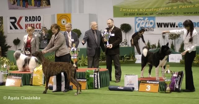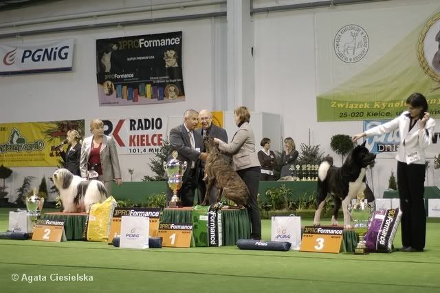 Viris Posted November 23, 2008 Posted November 23, 2008 Mudik - na innym forum opisałam moje wrażenia odnośnie finałów wystaw. Obserwuję wystawy, nie wystawiam ani nie planuję ( miałam mini ambicje hodowlano/wystawowe - ale już się ich wyzbyłam ). Trochę jednak już zauważyłam. Finały to wielka losówka - walczą przecież wygrani z każdej z ras, a każda rasa w sumie inna - więc nie ma porównania. Jednak nie oszukujmy się i nie udawajmy ślepych, raz wygra pies doskonały, wręcz ideał a raz hodowca który kryje psami sędziego itp. I specjalnie piszę że w tym drugim przypadku wygra człowiek, a nie pies. Na wystawie kieleckiej przeżyłam kilka rozczarowań, rozczarował mnie jeden sędzia którego szanowałam bardzo ( nawet nie moja grupa, ale po prostu jakoś tak ), wybór na pudło psa średnio się prezentującego z handlerem który leciał tylko na opinii - bo wystawiał najgorzej z całej stawki. Było tego więcej, ale nie miejsce na to i muszę iść spać. Cieszę się, że zdjęcia Wam się podobają. Chyba pobiłam rekord szybkości wystawiania fot, bo wyrobiłam się w tydzień przy okazji przemieszczając się do innego kraju. Quote