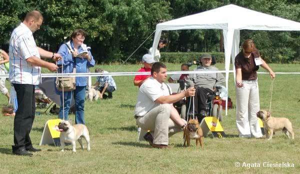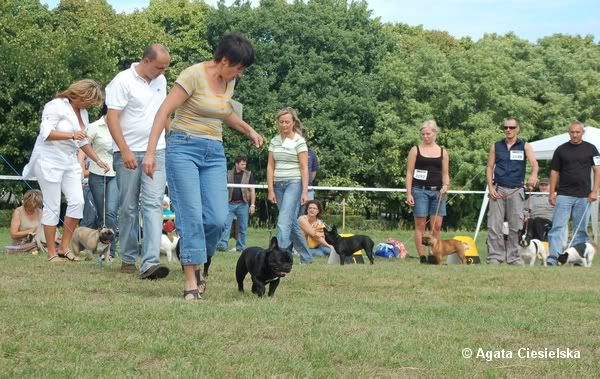 Viris Posted August 25, 2008 Posted August 25, 2008 Stawka oraz wyniki skopiowane z SBF - http://buldogfrancuski.com/serwis.htm 10.08.2008 SOPOT - międzynarodowa sędzia: Walter Jungblut (D) PSY klasa szczeniąt ANDO DE VITO von Galaxy - w.o.1, Najlepsze Szczenię Frustyle ZOLOTOY MALCHIK - o.4 Frustyle ZVEZDNYI PRINCE - w.o.2 ŻWIREK Draczyn - w.o.3 klasa młodzieży Fest HASSAN - dosk.2 JAGO Du Miriem - dosk.1, Zw. Młodzieży KROPEK Gro-Bez - MATI Sto Pręg - dosk.3 OPIESZAŁY OLAF 100-Pociech - VITO VALENTINO Milagnes - klasa pośrednia CYMES CAFUSO Minimolos - bdb.3 EGON Dreams Water - bdb.4 GREK ZORBA Sirios Vilage - GRINCZ Sirios Vilage - PLATON z Piotrowego Sadu - 2 Sopianae Imperator DENNIS - dosk.1, CWC klasa otwarta CELT DOLLAR Rubinowy Skarb - dosk.1, CWC, res.CACIB FARES Duża Bużka - 3 FRANTZ VON LOVE Chmiel L.A. - 4 MEXX ze Skrzatlandu - dosk.2 REKSIO Pro Publico Bono - klasa championów CARUSO Sto Pręg - dosk.1, CWC, CACIB, NDPwR FLAUBERT De la Parure - dosk.2 SUKI klasa szczeniąt Frustyle ZLATA MOSKOVIYA - o.2 ŻABKA Draczyn - w.o.1 klasa młodzieży BONNIE FOR MINIMOLOS Lazlo - dosk.2 DEJZI Nieznośna Milewa - GAIA La Ferme de Marlene - dosk.4 KOKO CHANEL Sto Pręg - LOLA ŻABA-A Od Pysi Oprysi - dosk.3 LOLITA Bartoszowa Zagroda - Sopianae Imperator ELLA - VENUS DE MILO Milagnes - db. YAVA Punkt Widzenia - dosk.1, Zw. Młodzieży, NJwR klasa pośrednia DARMA Tymiankowe Wspomnienie - 3 GAJA Sto Pręg - 2 INKA Sto Pręg - 4 KALIKASYA Psia Frajda -db ( uzupełnienie - widziałam kartę oceny u sędziego ) MORGAN ze Skrzatlandu - dosk.1, CWC, res.CACIB klasa otwarta AGATA Sfora Gregora - AMELIA Sfora Gregora - CHRUMKA Draczyn - dosk.1, CWC DUMKA Sfora Gregora - dosk.2 FERRERO ROCHE Sto Pręg - dosk.3 HATSEPSUT Król Arlekin - HAZEL JANE vom Olymp - INDIA Collin - 4 ROLADKA Pro Publico Bono - klasa championów A'Vigdors EXPRESSION - dosk.1, CWC, CACIB, NDSwR, BOB klasa weteranów IRIS Hokus Pokus - dosk.1 Quote