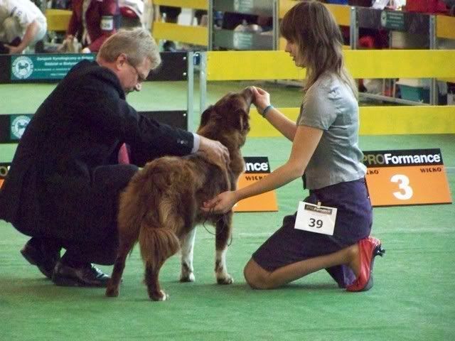 zakla Posted September 5, 2008 Author Posted September 5, 2008 Su tez miala bdb wlasnie za waska klate i ogolna niedojrzalosc:cool3: Te opisy z Bstoku rzeczywiscie malo czytelne, ale mi udalo sie rozszyfrowac:lol: Wydaje mi sie, ze on nie jest typem allroundera, tylko wlasnie te szczegoly sa dla niego najistotniejsze. W kazdym razie ja chetnie pojade do niego jeszcze raz, jak juz mi sie sucz rozwinie i nabierze masy :) Racja, ze nie biega sie u niego zbyt wiele- jedno koleczko i I. Niemniej przyglada sie uwaznie pracy konczyn od przodu i od tylu, no i jak jest za wasko, to to wylapuje ;) I jeszcze jedno- u nas wyszlo na to, ze lubi psy sredniej kosci. Uff, za to ma u mnie wielki wielki plus! Bardzo podobal mu sie typ mojej suki i jej brata, a sa versami- tzn. polowe rodowodu maja linii pracujacych. Fotka z ringu: EDIT: "nie wiem czy mial na to wplyw kraj jego pochodzenia" W naszej rasie skandynawia to w ogromnej wiekszosci psy w zupelnie innym typie, jest tam mnostwo versow, ktore czesto nie przypominaja wystawowych puszkow klusiaczkow, a sedziowie tamtejsi sa w stanie docenic ich ladna budowe, a nie efektownosc. Dlatego dla ludzi przyzwyczajonych do wiekszosci naszych sedziow, ktorzy patrza tylko na efektownosc, to moze powodowac oburzenie. A i owszem, versik u polskiego czy czeskiego sedziego nie ma wiekszych szans na wygrana, natomiast juz u norwego czy fina- owszem. Dlatego ja wyszukuje sedziow z tamtych rejonow bardzo pilnie, bo sa oni przyzwyczajeni do psow w takim typie, jaki pokazuje moja sucz :lol: Quote