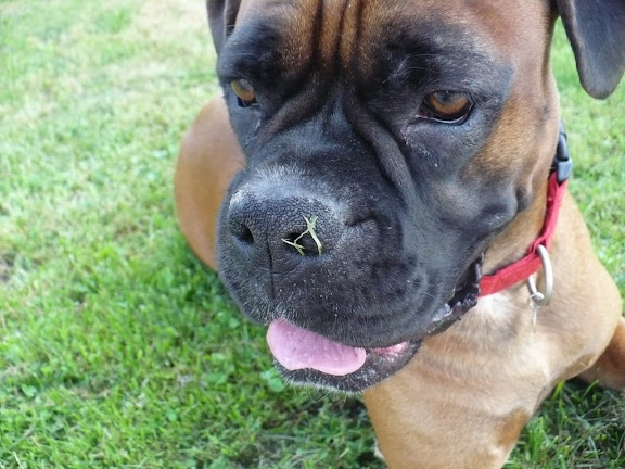 Moniek193 Posted September 6, 2008 Posted September 6, 2008 Ciamajda Sara wita! Miałam nazywać się Gero...bo pańcia od zawsze planowała pięknego, odważnego chłopczyka! Ale los lubi płatać figle :) I dlatego od 9.09.2006r. w jej życiu pojawiłam się ja:loveu: Klea, Kaja, Gera... , w pierwszym tygodniu pobytu w nowym domku miałam tysiące imion, ale w końcu staneło na Sara. Jestem bardzo towarzyska i nie lubię sama zostawać w domu:oops: Kiedy jednak po raz pierwszy moja pani zostawiła mnie samą na 5 minut, wygryzłam dziurę w ścianie:loveu: Dla zabicia czasu i nudy:loveu: Bardzo lubię bawić się z innymi psami, oczywiście na mój własny sposób, dlatego nie rozumiem czemu te psiaki się mnie boją:roll: Zapewniam nawet darmowy prysznic własną śliną:multi: Pańci jest za mnie nie raz wstyd, również nie rozumiem dlaczego:evil_lol:Przecież jestem taaka grzeczna:diabloti: Co lubię : jeść i spać:evil_lol: Za co pańcia się na mnie złości : Za to, że uciekam do sąsiada i kopię mu w ogrodze dołki:loveu: Czego nie lubię: Dezodorantów! Toczę z nimi odwieczną walkę:diabloti: Jak na mnie mówią: Księżniczka, Królewna, Ludwisia, Ciamajda, Piecha:evil_lol: Mój wiek: 21 lipca 2010r. skończyłam 4 latka:multi: A ja rosnę wciąż rosnę, niedługo skończę 5 lat, 6 itd. A pani wciąż się martwi moimi dziecinnymi zachowaniami:loveu: Moją głupotką i wariacjami:roll: A ja pytam: jaką głupotą, jakimi wariacjami:-o Przecież jestem bokserem, czyli wszystko w normie:evil_lol: Zapraszamy! Quote
