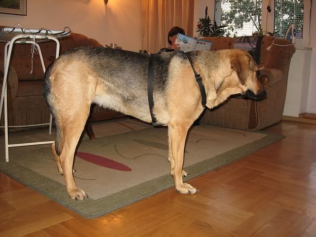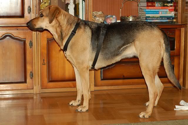 Agnes Posted June 4, 2009 Posted June 4, 2009 Mam prosbe do znawcow szelek;) jakis czas temu dostalam szelki - zwykle, guardy, ktore po zalozeniu i wbrew pozorom wyregulowaniu wygladly tak: Gorny pasek byl na tyle dlugi, ze nie dalo sie lepiej wyregulowac szelek - jakbym wtedy wydluzyla dolny pasek to druga obrecz znalazla by sie chyba w polowie psa;) W zwiazku z czym chce je przerobic - skracam gorny pasek i tu pytanie. Skrocilam juz o dobre 4 cm i wyglada teraz to tak: Czy jest dobrze? Czy cos zmienic? Czy jeszcze skrocic?