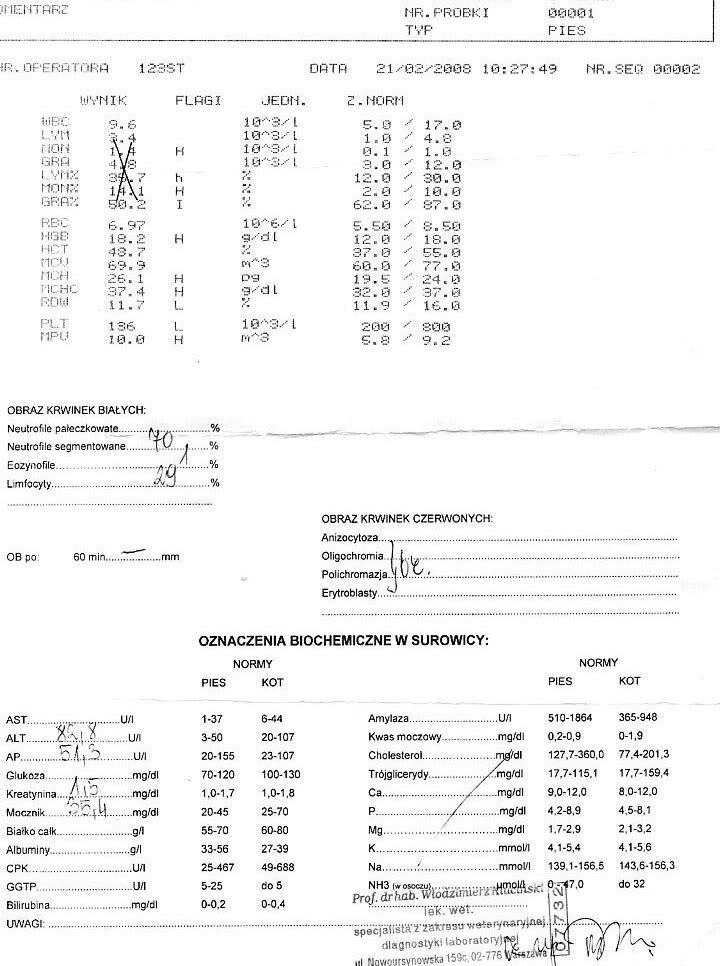 Martens Posted December 14, 2010 Posted December 14, 2010 Na SGGW w W-wie płaciłam ok. 120-150 zł za całość razem z tarczycą, z czego "większa połowa" to był koszt badań tarczycowych, bo są wysyłane na Gagarina. Skanuję właśnie wyniki ;) zaraz wstawię. EDIT: Wyniki na ok. 2 tygodnie przed przejściem na barf; pies miał 8,5 roku, był na Acanie dla seniorów: http://i302.photobucket.com/albums/nn104/Blackpoint/img096.jpg Wyniki po półtora roku na barfie, pies lat 10: http://i302.photobucket.com/albums/nn104/Blackpoint/img097.jpg W tarczycowych różnica jest tylko taka, że poziom hormonów na Acanie był na samym dole normy, na barfie jest idealnie pośrodku na tej samej dawce leku. Quote