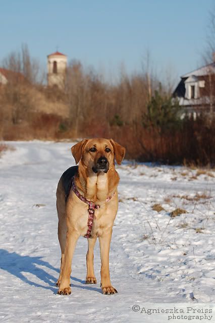 Z mniej milych rzeczy, Aza dzisiaj zrobila sobie "cos". Mama przyszla do domu, okazalo sie, ze pies nie jest w stanie chodzic. Szybko wrocilam z pracy, faktycznie Aza nie wstaje, nie staje na tylna lape i widac ze bardzo ja boli. Ma spuchniete biodro. Prawdopodobnie weszla na wersalke jak byla sama i spadla. Potlukla sie mocno i taki efekt. Musze ja podnosic, bo tylka nie da rady sam udzwignac. Wetka macala i nie wyczula nic niepokojacego. Mam nadzieje, ze jutro bedzie choc troche lepiej, jesli nie cykniemy zdjecie, problem w tym ze niewiadomo co "cykac":roll: Suka przy macaniu nie chciala pokazac ktore miejsce ja boli.