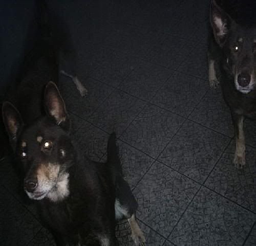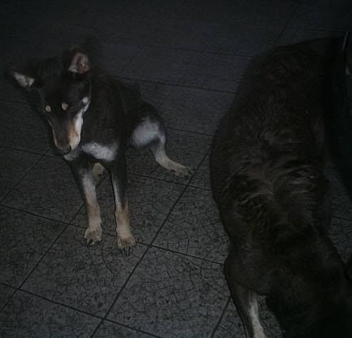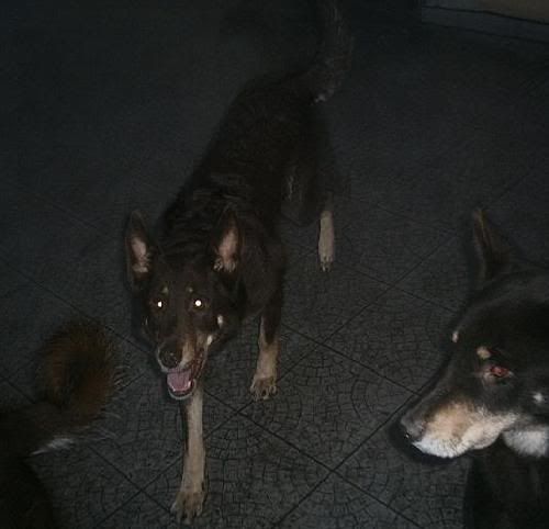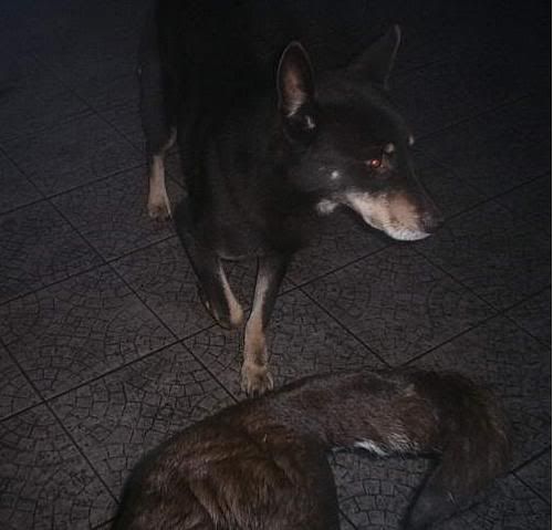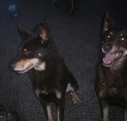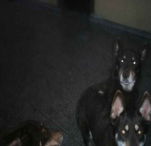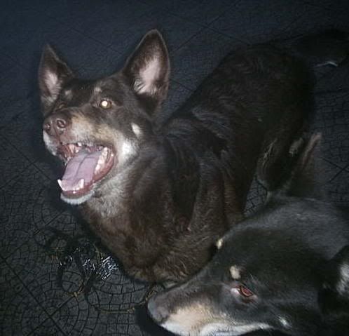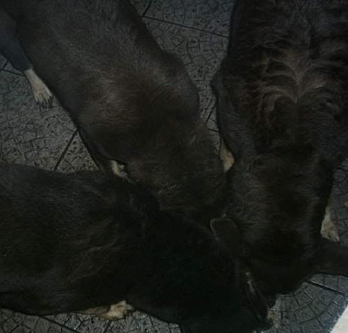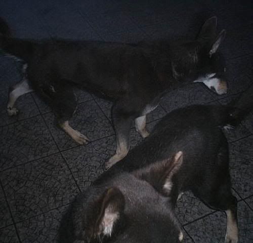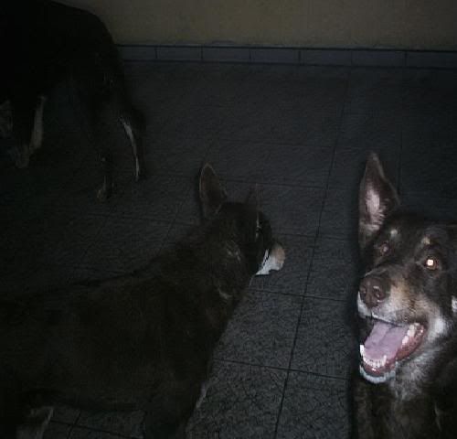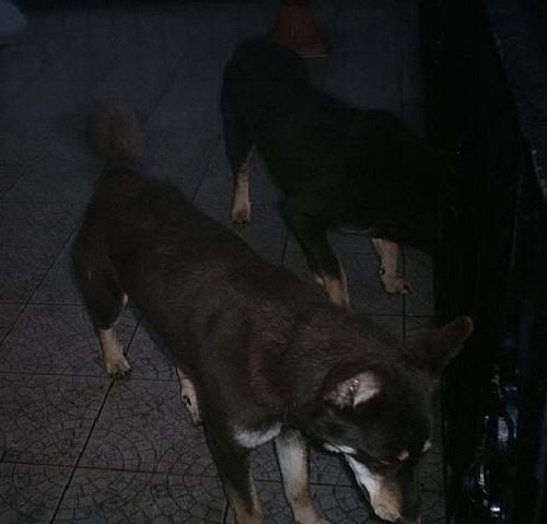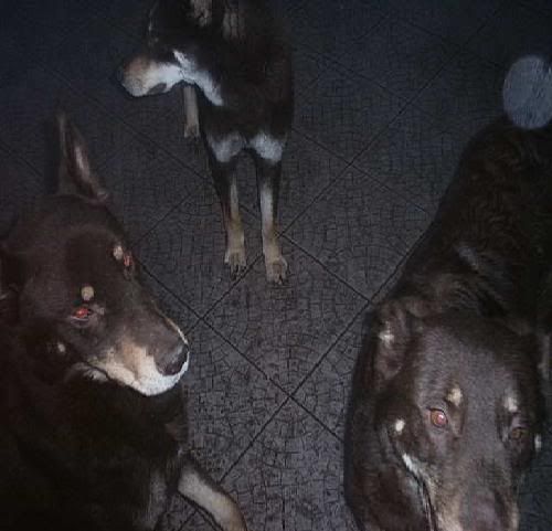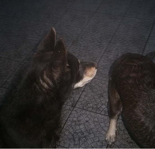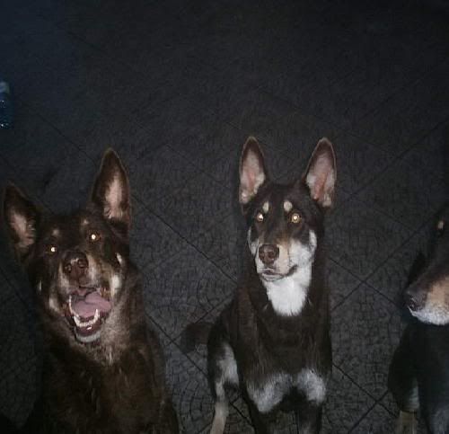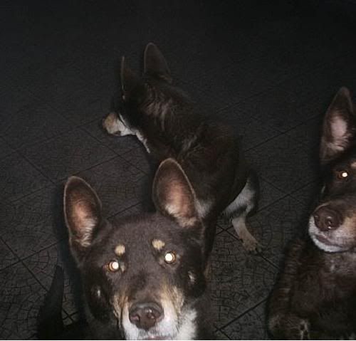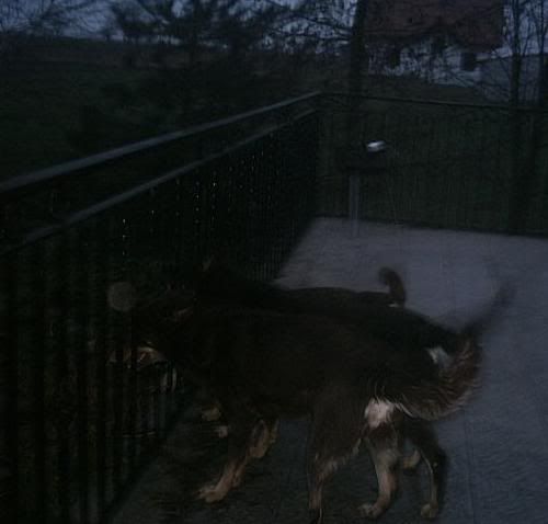 KaRa_ Posted January 14, 2005 Author Posted January 14, 2005 Dziś porobiłam czekoladkom duuużo zdjęć :) Specjalnie dobrze psy widać i możecie się przyjrzeć, że to nie są klony :-? Tylko różne od siebie psy bo Saba i Spike są masywne i duże, a Delta mała i lekkiej budowy. Że pyski mają inne, inaczej uszy położone, inna sierść itp :wink: Pierw zacznę od pojedyńczych zdjęć żebyście wiedzeli który pies to który po przedstawieniu 8) Delta w ruchu Delty mordka (spójrzcie jaki ma śniezny nosek :lol: ) Spike w ruchu Mordka Spike Spike widać ma większy nos od delty i bardziej zaokraglony pysk Teraz Sabcia Widać,że ma jakby z boku osadzone uszy I jest dość jasna porównaniem do tamtej dwójki Teraz fotki razem Widać już na zdjęciu każdy ma inny włos Saba lekko kręcony i błyszczący, Delta ma sierść puszystą, a Spike ciemną i sztywną Biegają sobie Co tam ciekawego jest? Zamyślenie czy zapatrzenie się? Ach te ślepia "Wilków" A zębiska mają duże... Te spojrzenie Zapolujemy? Jak widać psy się bardzo różnią :wink: Z Spike to taki marzyciel 8) Saba zapatrzona w smakołyk Na koniec Spike Quote